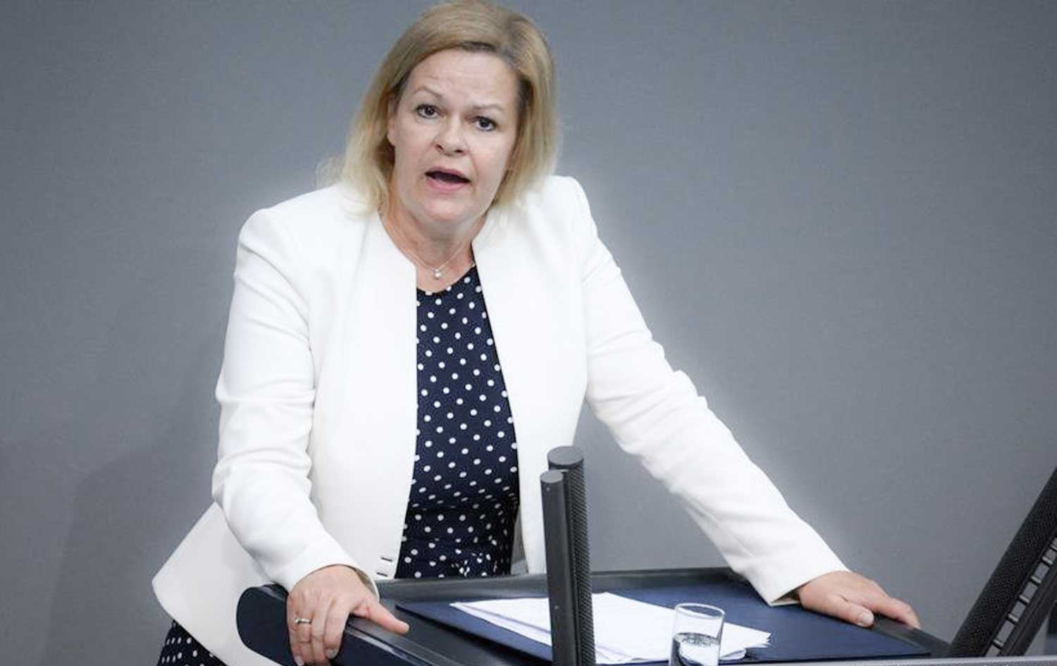 دوای کۆبوونەوەی لەگەڵ بەرپرسانی پۆلیسی فیدراڵیی وڵاتەکەی، نانسی فیزەر، وەزیری ناوخۆی ئەڵمانیا، رۆژی هەینی، 20ـی تشرینی یەکەمی 2023، گوتی، "ئەگەر بتوانین پشتیوانیکارەکانی حەماس دیپۆرت بکەینەوە، ئەوا پێویستە ئەو کارە بکەین"؛ گوتیشی، "دامودەزگە ئەمنییەکانمان بەم دواییانە سەرنجیان لەسەر ئیسلامییەکان چڕکردووەتەوە."