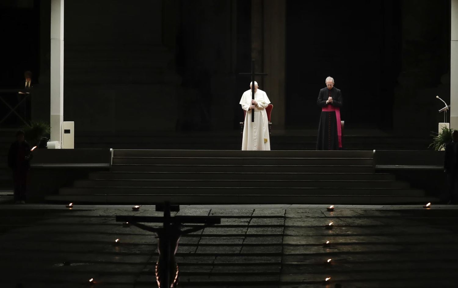 لەبەردەم دەیان هەزار لە شوێنکەوتووانی کە چووبوونە گۆڕەپانی قەشە پوتروس، پاپا فڕانسیس داوای لێکردن نزای بۆ بکەن پاشان چەمایەوە بۆیان، پاپاکانی پێش خۆی ئەو کارەیان نەدەکرد.