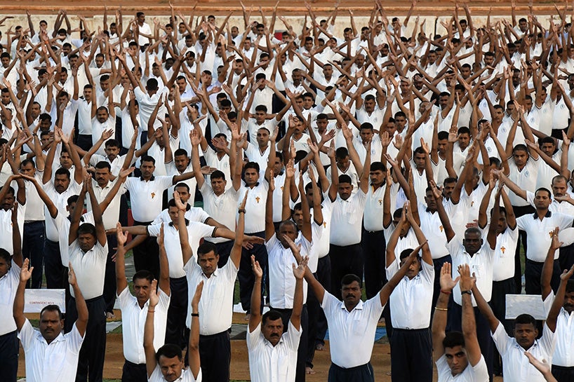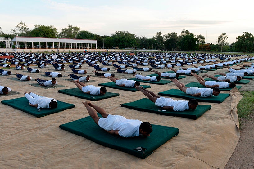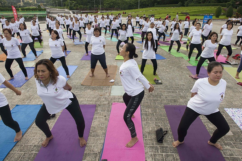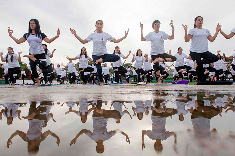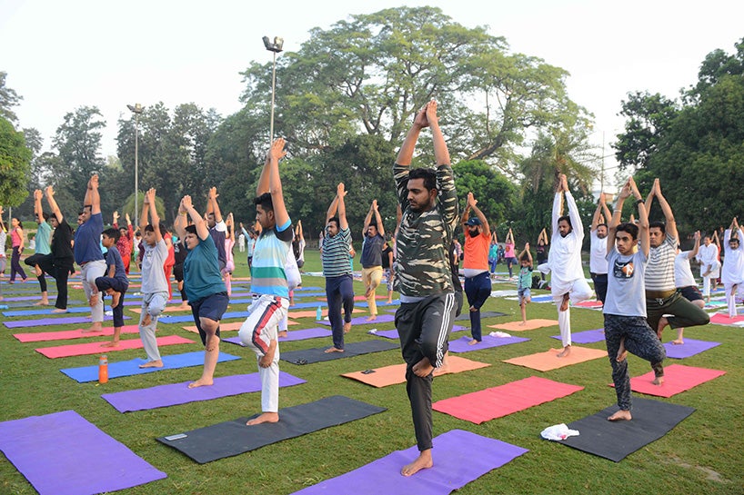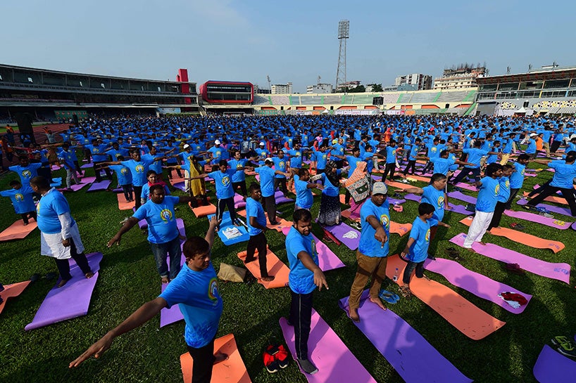 لە رۆژی جیهانیی یۆگادا لە زۆربەی وڵاتانی جیهان ئەو کەسانەی یۆگا دەکەن، لە بەرەبەیانیی زووەوە بەشدارییان لە کۆرسی یۆگا کرد و پێشوازییان لەو رۆژە کرد.