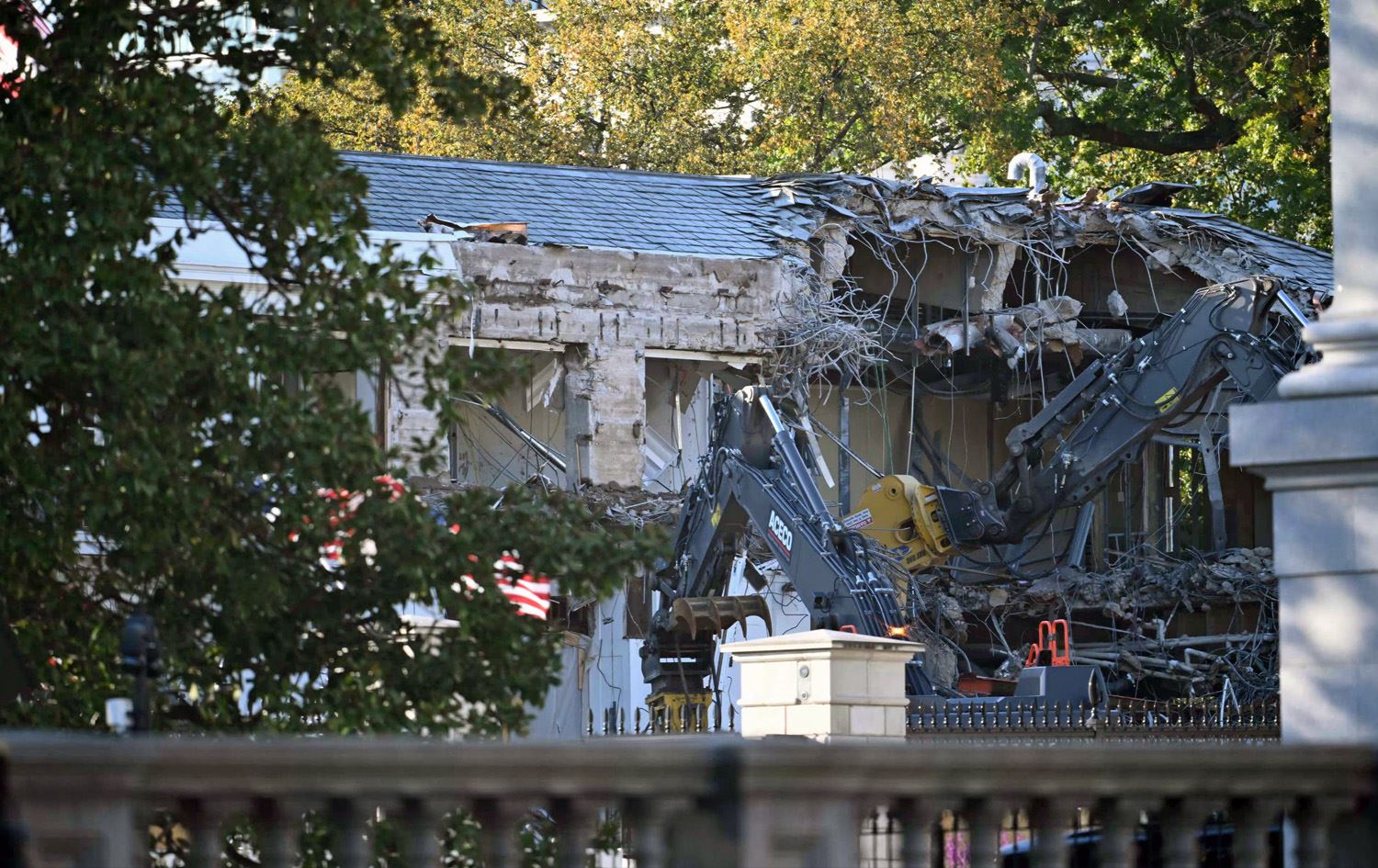 باڵەخانەی باڵی رۆژهەڵاتی کۆشکی سپی بە ئامێری بڕینی کۆنکرێت و ئاسن، رووخێنراوە.