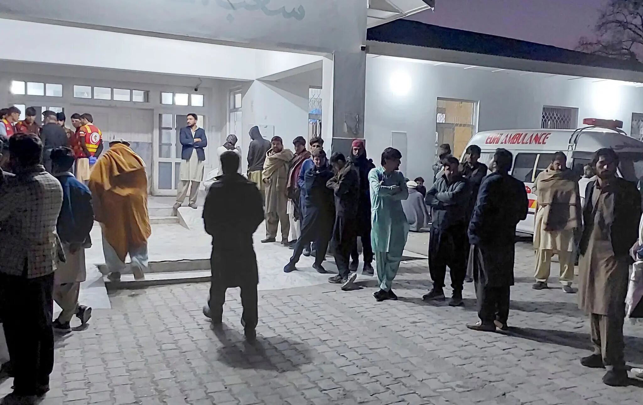 کەسوکاری کوژراوەکان لە بەردەم نەخۆشخانەیەکی ناوچەکە وەستاون و چاوەڕێی گەڕانەوەی تەرمەکان دەکەن. وێنە: AP