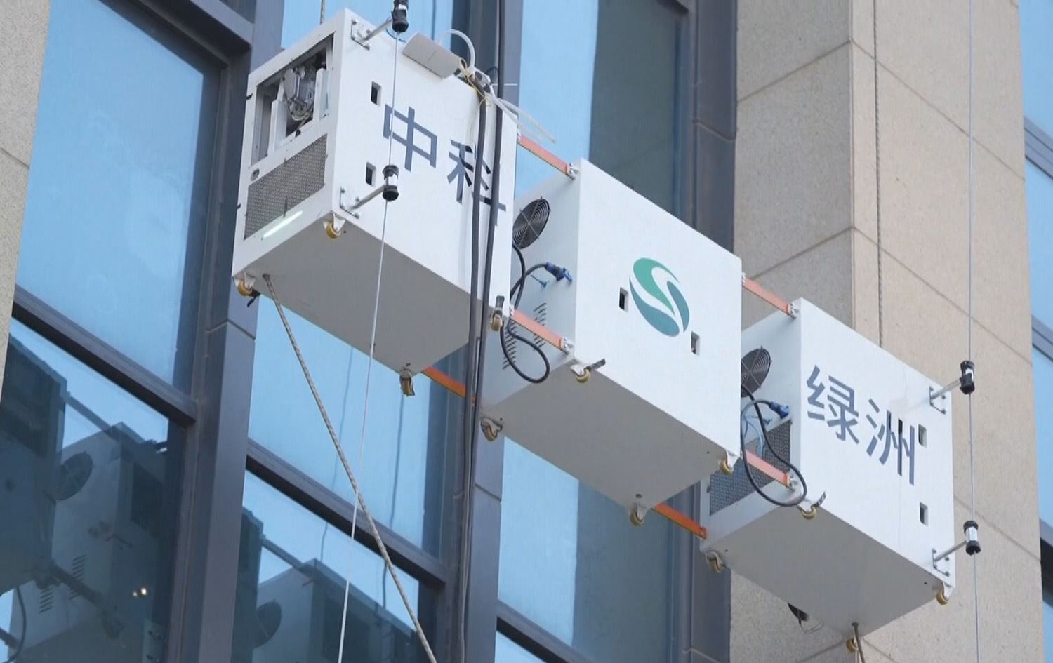 لە پارێزگای ئانهوی لە رۆژهەڵاتی چین، سێ رۆبۆتی سپی بەسەر شووشە و جامەکانی باڵەخانەیەکی بەرز هەڵگەران و بەشێوەیەکی ستوونی خاوێنیان کردەوە.