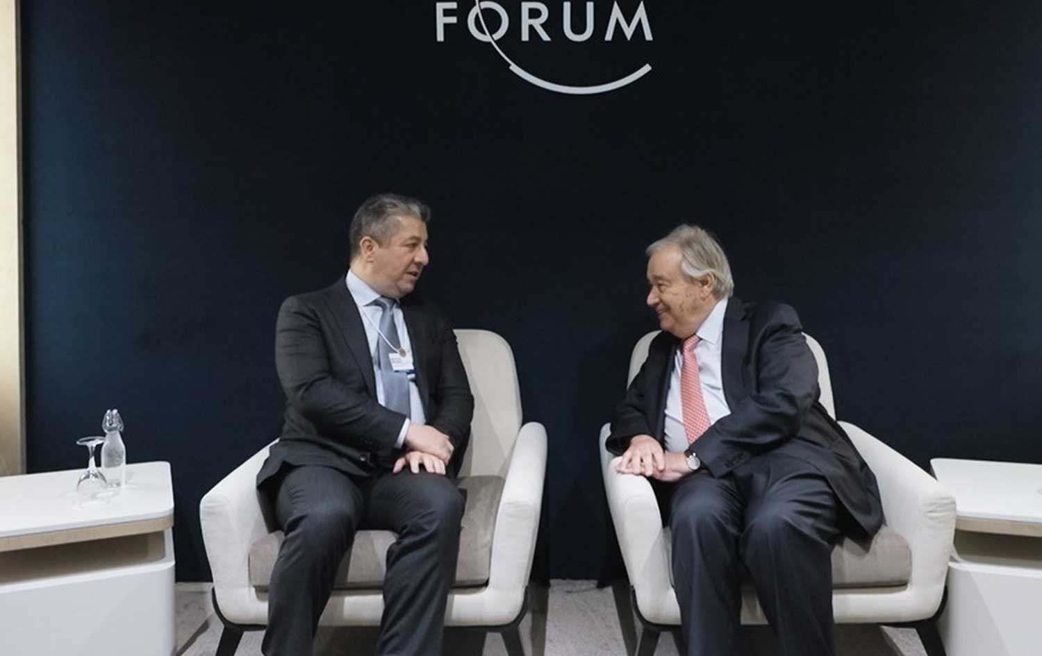 مەسرور بارزانی، سەرۆکی حکومەتی هەرێمی کوردستان ئەمڕۆ (چوارشەممە، 22-1-2025) لە داڤۆس، لەگەڵ ئەنتۆنیۆ گۆتێرێز، سکرتێری گشتیی نەتەوە یەکگرتووەکان کۆبووەوە.
