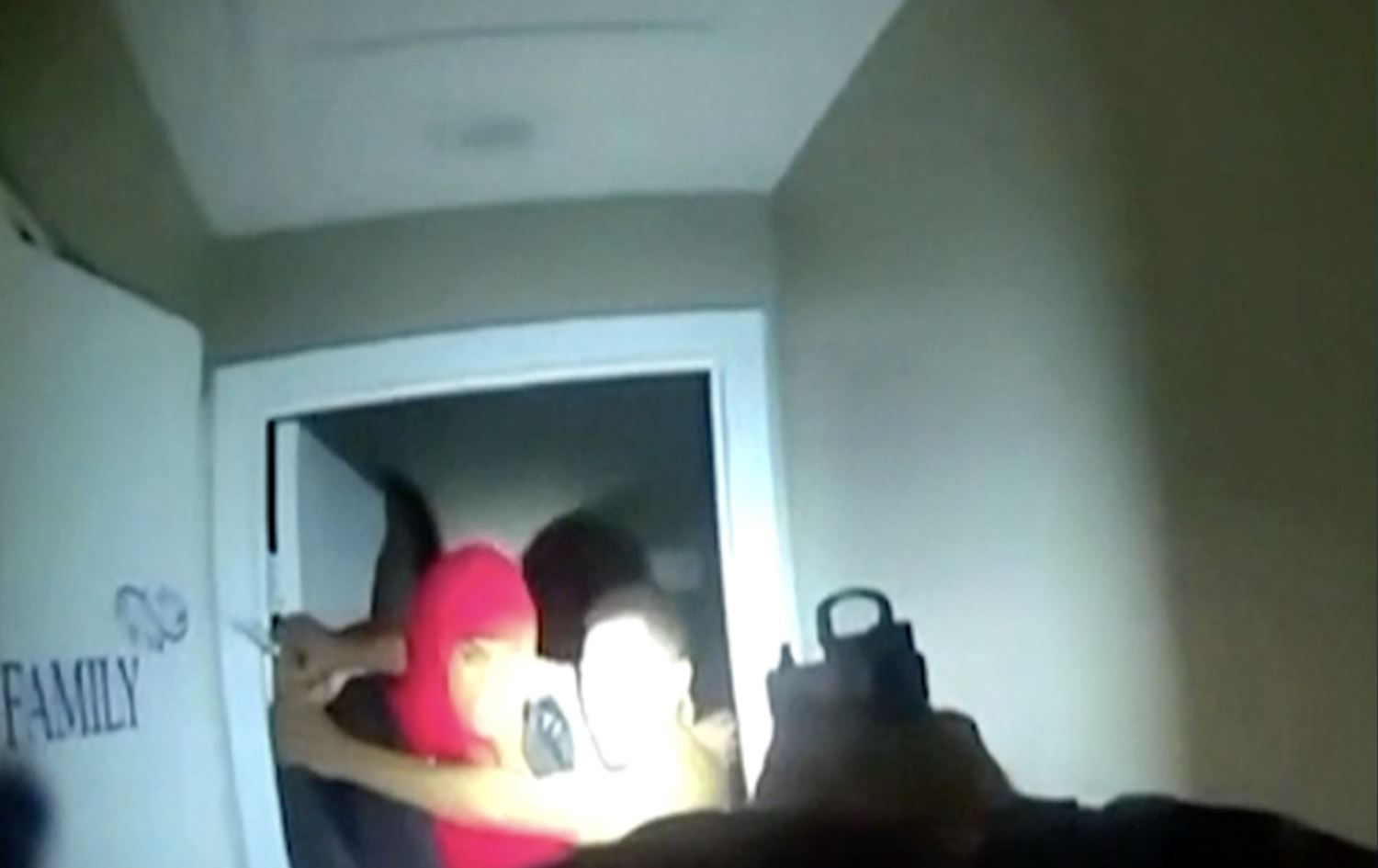 لە کامێرای سەر سینگی ئەفسەرەکە دەردەکەوێت کە پۆلیس دەرگەی ماڵی براندن دەشکێنن و دەچنە ژوورەوە. ماڵەکە تاریکە و کارەبای نییە، ئەفسەرەکە دەگاتە بەردەم دەرگەی ژوورێک کە ژنێک و پیاوێک وەستاون. براندن بە نیمچەڕووتی وەستاوە و دەستی دزەکەی گرتووە کە چەقۆی پێیە و ماسکێکی بەستووە.