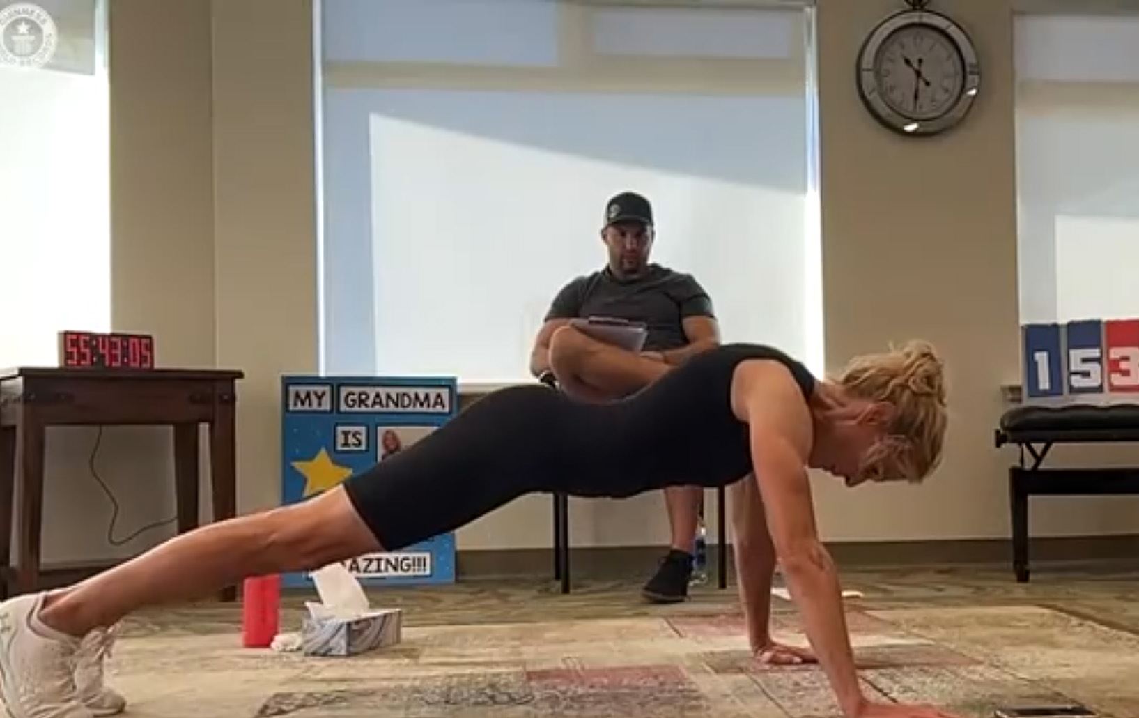 پێشتر ئەو ژنە کەنەدییە توانی ریکۆردی زۆرترین کات مانەوە لەسەر ئەنیشک و پەنجەکانی پێ (Abdominal Plank Position) بشکێنێت کە چوار کاژێر و 30 خولەک و 11 چرکە بوو. ئەو گوتی، راهێنانی ئەنیشک ئەوی بۆ شناوەکان ئامادەکرد.