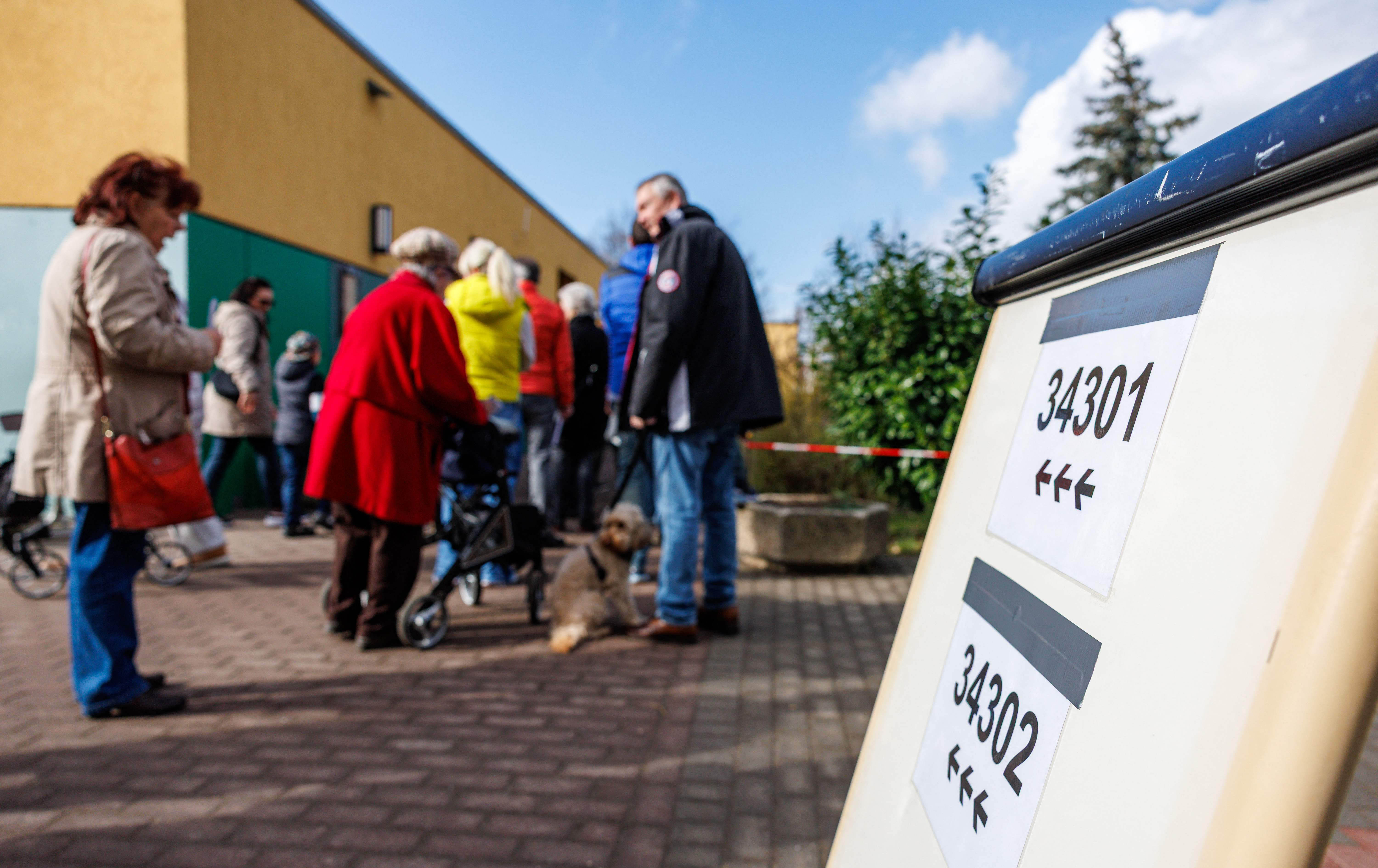 ژمارەیەک دەنگدەر لەبەردەم بنکەیەک لە رۆژئاوای ئەڵمانیا. وێنە: AFP
