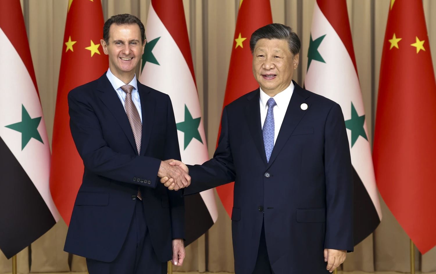شی جین پینگ، سەرۆکی چین لە کۆبوونەوەی لەگەڵ بەشار ئەسەد رایگەیاند، "لە جیهانێک کە ناسەقامگیری و نادڵنیایی تێدایە، چین پابەندە بە کارکردن لەگەڵ سووریا. ئێمە بەردەوام دەبین لە هەوڵە هاوبەشە بەردەوامەکان، پشتگیرکردنی یەکدی لە بەهێزکردنی هاوئاهەنگی بۆ بەرگریکردن لە ئاشتی و دادپەروەریی نێودەوڵەتی."