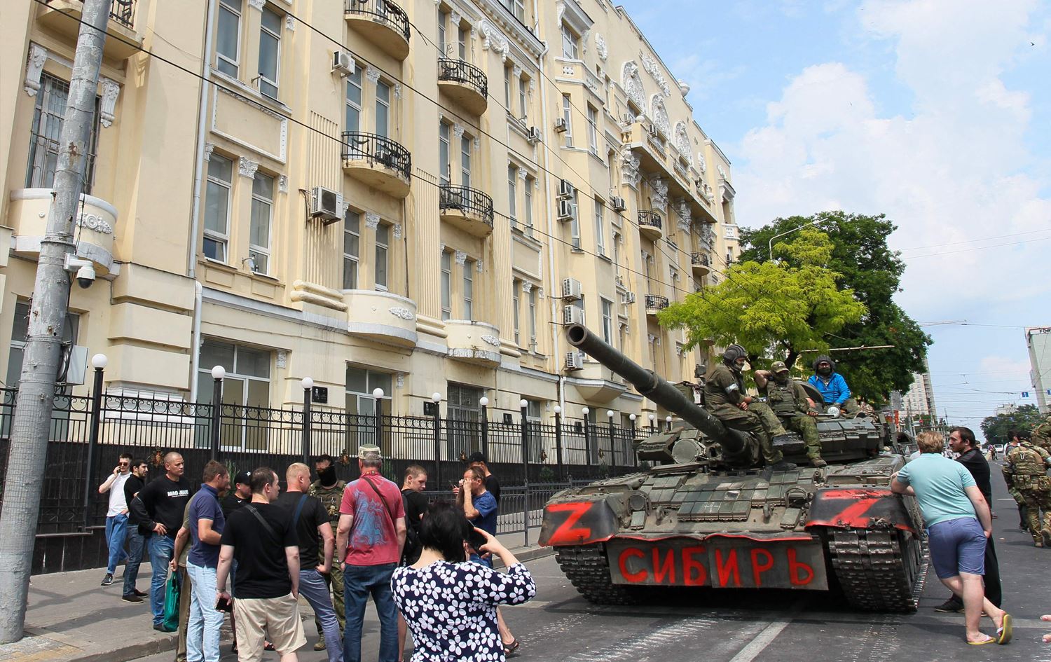 هاوکات دەیان هاووڵاتیی شارەکە لە بەردەم بارەگای سوپای رووسیا لە رۆستۆڤ کۆبوونەوە و درووشمی "ڤاگنەر"یان دووبارەکردەوە.