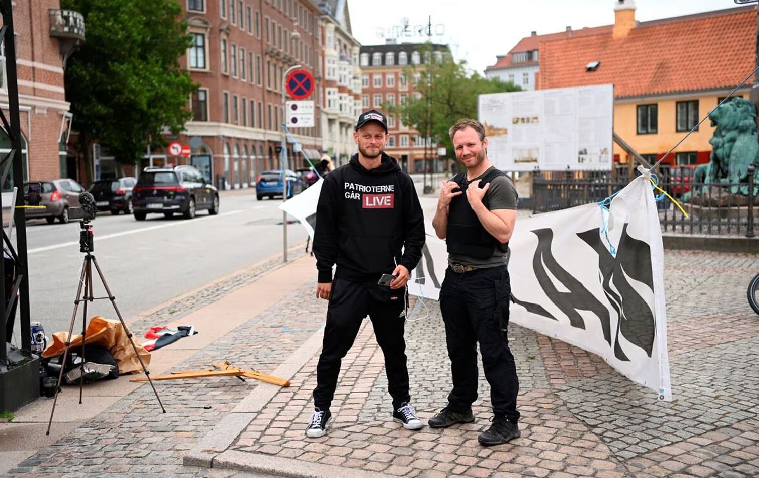 ئەو دوو کەسەی ئەمڕۆ کۆپییەکی دیکەی قورئانی پیرۆزیان لە بەردەم باڵیۆزخانەی عێراق لە دانیمارک سووتاند. وێنە: Reuters