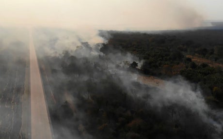 هاوکات لەگەڵ ئاگرەکەی دارستانی ئەمازۆن، ئاگر لە دارستانەکانی بۆلیڤیا لە ویلایەتی ماتۆگروسۆ کەوتووەتەوە کە هاوسنوورە لەگەڵ بەرازیل.