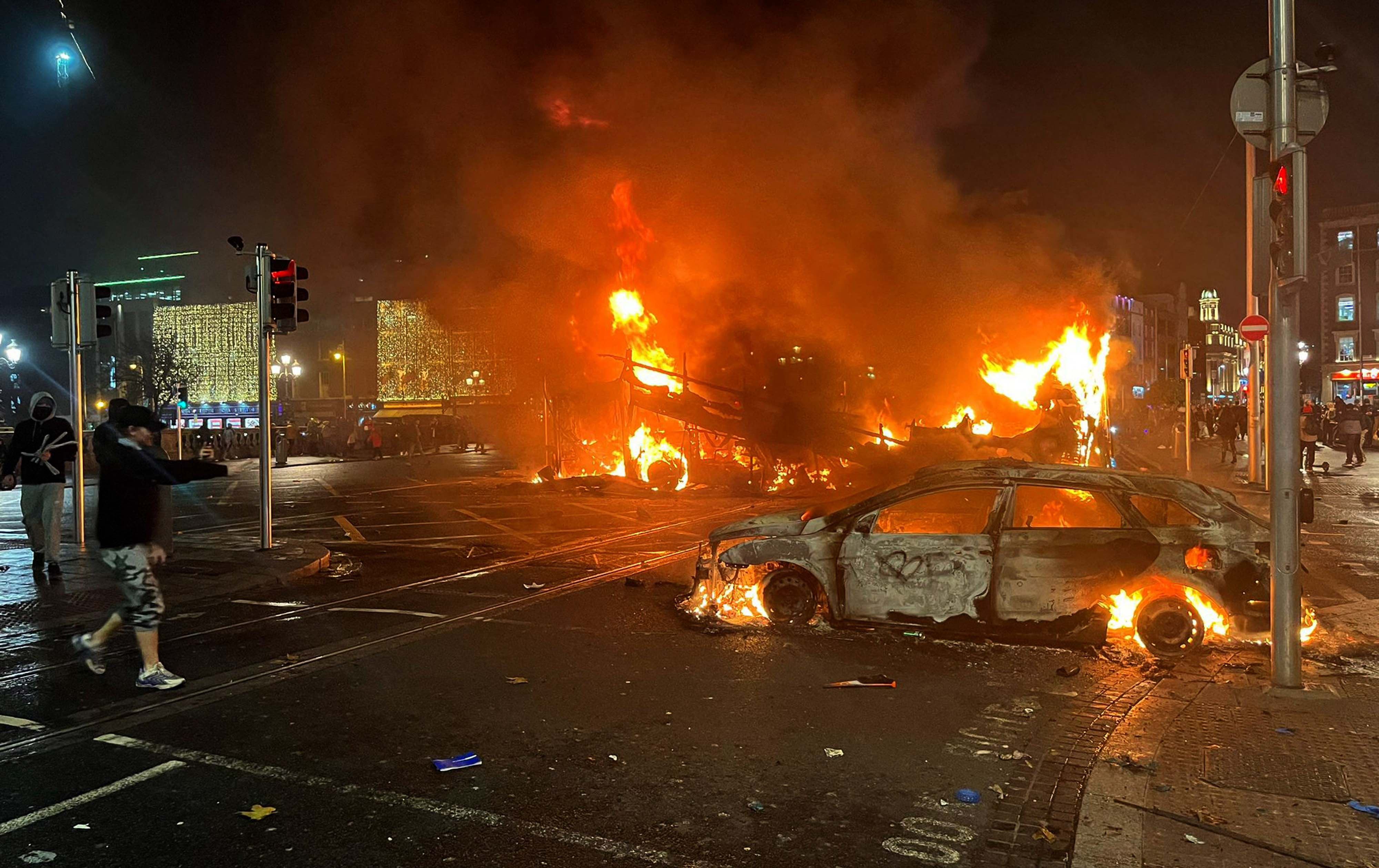 دوای ئەوەی رۆژی پێنجشەممە پیاوێک بە چەقۆ هێرشی کردە سەر ژمارەیەک کەس و سیانیانی بریندارکرد، شەوی رابردوو دەبلنی پایتەختی ئێرلەندا شەوێکی پڕ گرژی بەڕێکرد و خۆپێشاندەران و پۆلیس رووبەڕووی یەکدی بوونەوە.