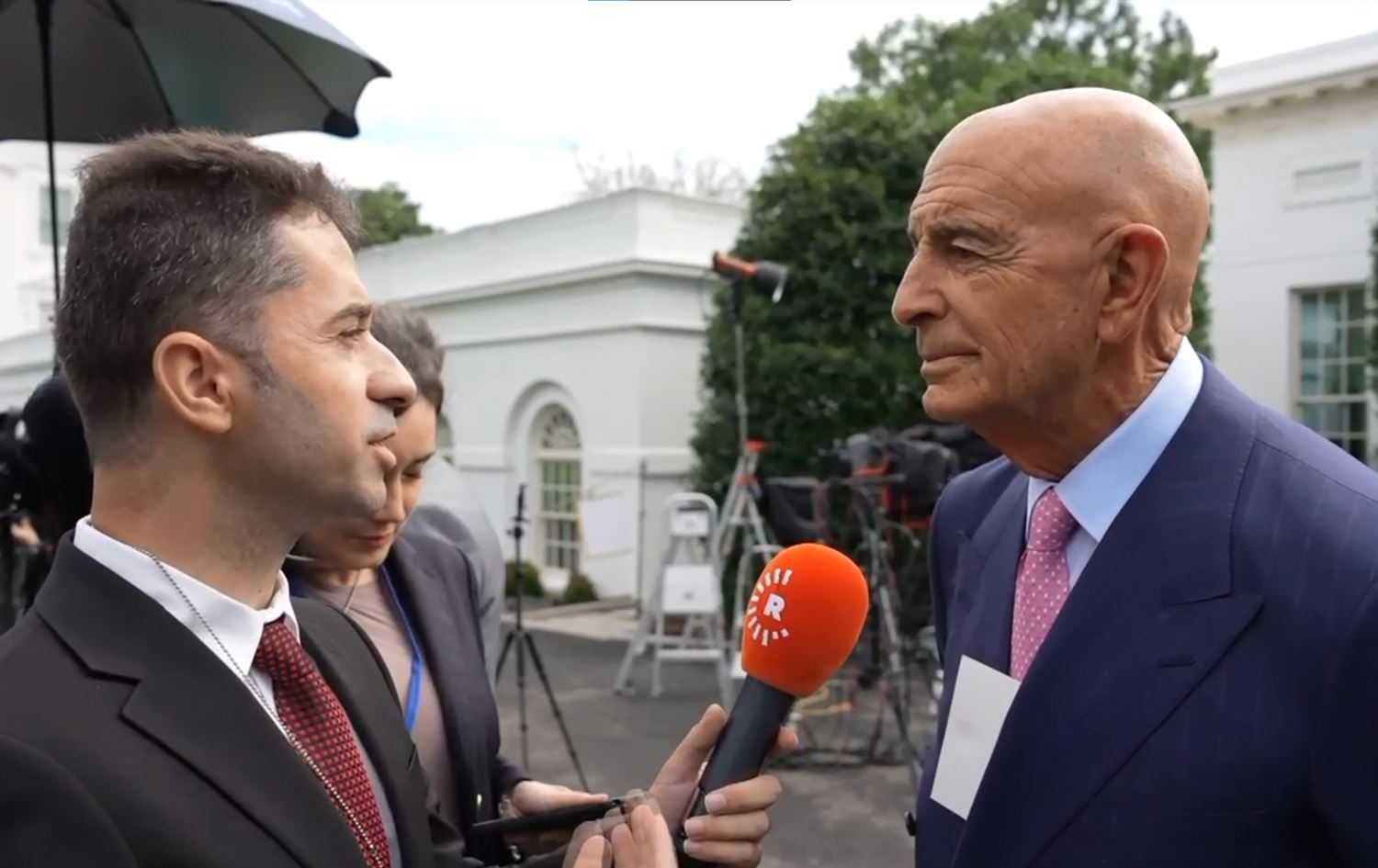 تۆم باراک، هاوکات باڵیۆزی ئەمریکاشە لە تورکیا. ئەم هەڤپەیڤینەی لەگەڵ رووداو، دوای کۆبوونەوەکەی دۆناڵد ترەمپ و رەجەب تەیب ئەردۆغان بوو لە کۆشکی سپی. باراک بە قاتێکی شین و بۆینباخێکی پەمەییەوە، لە کۆشکەکە هاتە دەرەوە و دیار کوردە مایکی بردە بەردەمی و لێی پرسی: کۆبوونەوەکە چۆن بوو؟