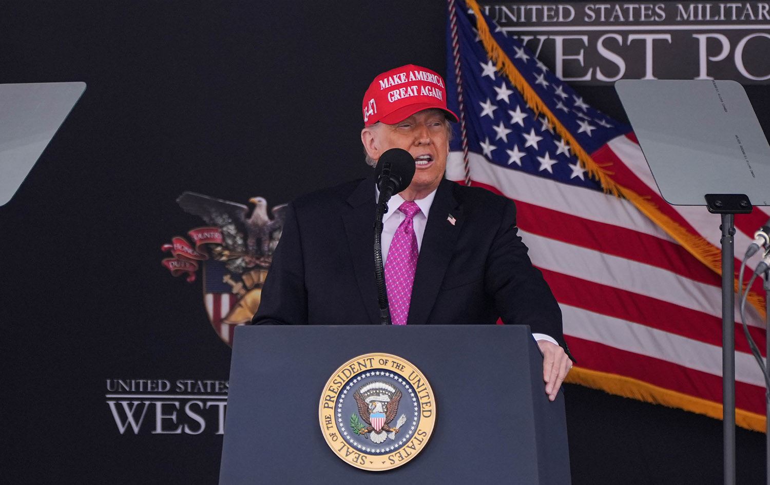 لەو کاتەوەی وەکو سەرۆک دەستبەکاربووەتەوە، ترەمپ هەڵمەتی "ئەوپەڕی گوشار"ی لەسەر ئێران کارا کردەوە. ئەگەرچی ترەمپ پشتیوانی لەوە دەکات بە گفتوگۆ بابەتەکە چارەسەر ببێت، هۆشداریی بە ئێران داوە کە ئەگەر رێگەی دیپلۆماسی شکست بهێنێت، ئەوا وڵاتەکە بۆردوومان دەکرێت.