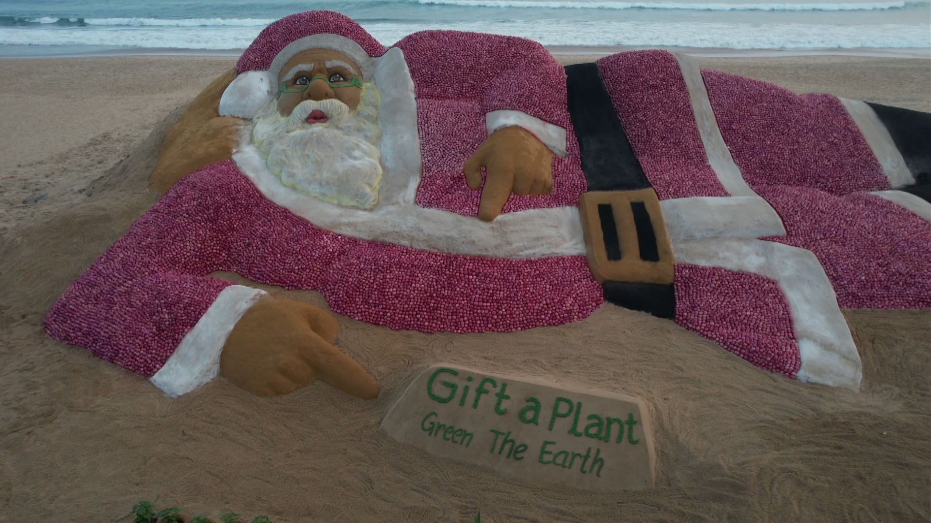لە هیندستان هونەرمەندێک بە هاوکاریی 32 خوێندکاری کۆلێژی هونەرەجوانەکان لە رێگەی لمی کەناراوەکان و دوو تۆن پیاز پەیکەرێکی زەبەلاحی سانتاکلۆز لە کەناراوەکانی بلوو فلاگ لە ئۆدیشای ئەو وڵاتە دروست دەکەن.