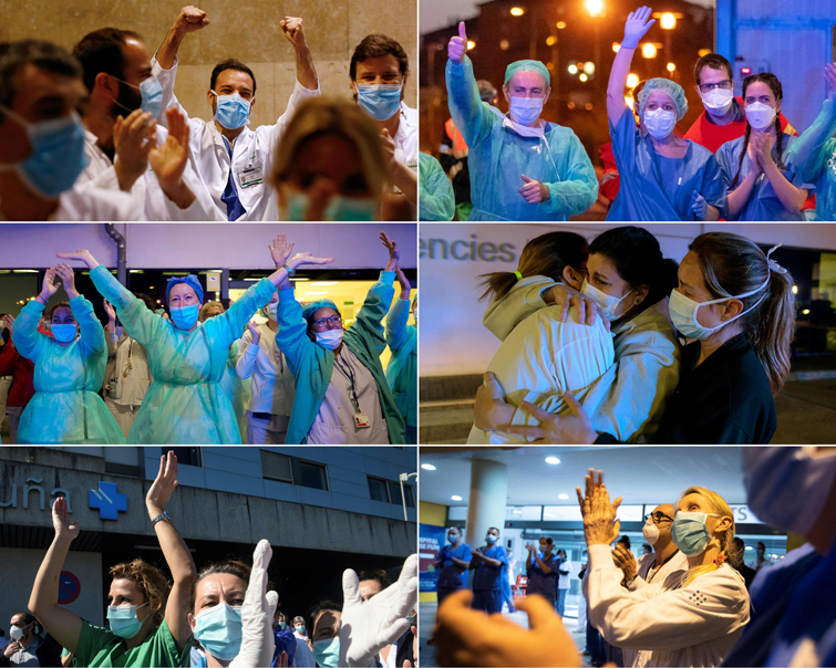 رۆژی پێنجشەمممەی رابردوو، تیمە پزیشکییەکان لە یەکێک لە نەخۆشخانەکانی مەدریدی پایتەخت، بە چەپڵەوە ماڵئاواییان لە یەکێک لە نەخۆشەکان کرد و هیوای تەندرووستییەکی باشیان بۆ خواست.