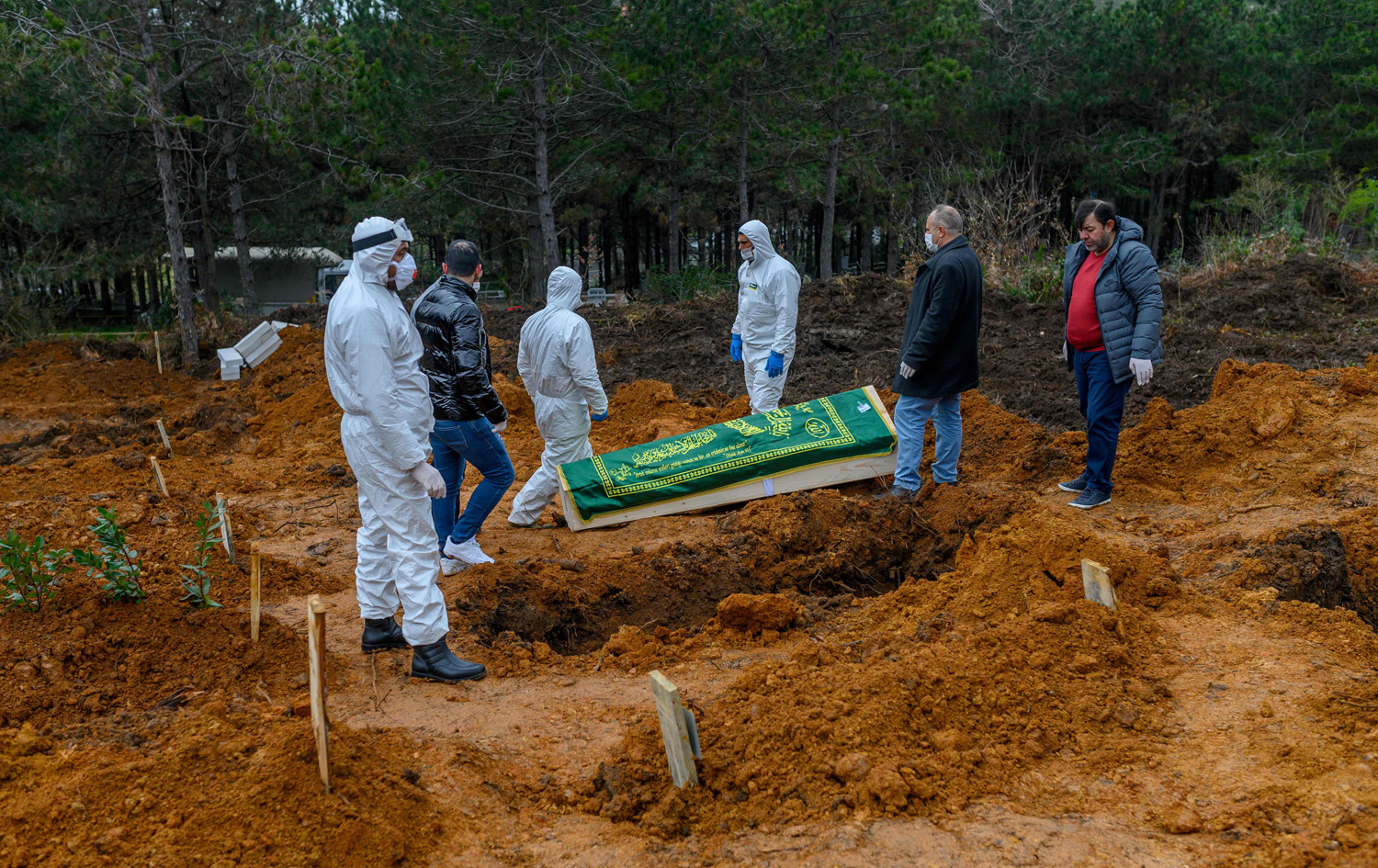 کەسێک بە خاکدەسپێرن کە لە ئیستانبووڵ بە کۆرۆنا گیانی لەدەستداوە. وێنە: AFP