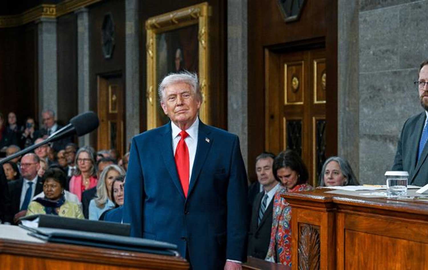 لە بەشێکی دیکەی قسەکانیدا، ترەمپ شانازیی بە دەستکەوتە ئابوورییەکانی ناوخۆی ئەمریکاوە کرد و رایگەیاند، پێوەری داو جۆنز گەیشتووەتە 50,000 خاڵ و (ئێس ئاند پی)ـیش گەیشتووەتە 7,000 خاڵ.