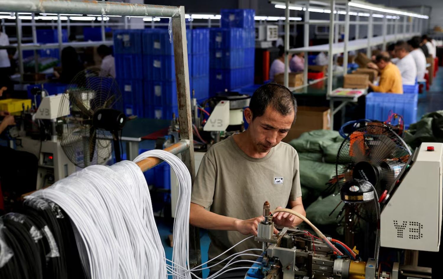 پیاوێک لە کارگەیەکی چین کار دەکات و جەنگەکە بووەتە هۆی بەرزبوونەوەی نرخی شتومەکەکانیان. وێنە: Reuters
