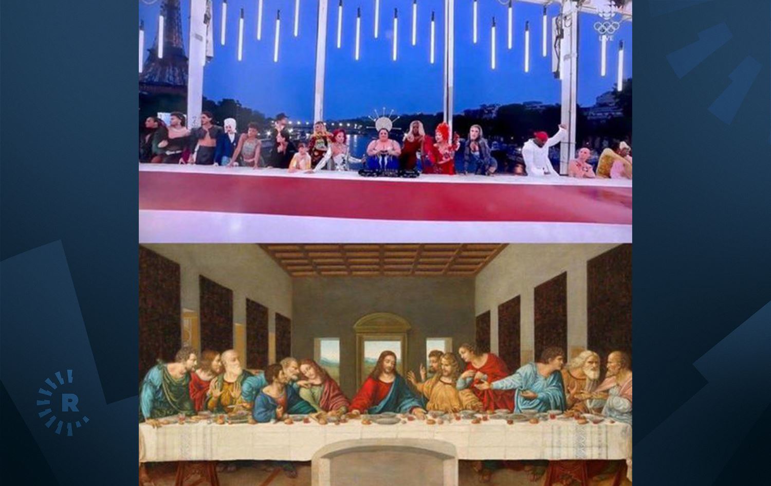 نمایشی کۆمەڵێک پیاوی هاوڕەگەزخواز (وێنەی سەرەوە)، کە لاسایی دوایین ئێوارەخوانی پیرۆزی پەیامبەر عیسا دەکەنەوە (وێنەی خوارەوە)