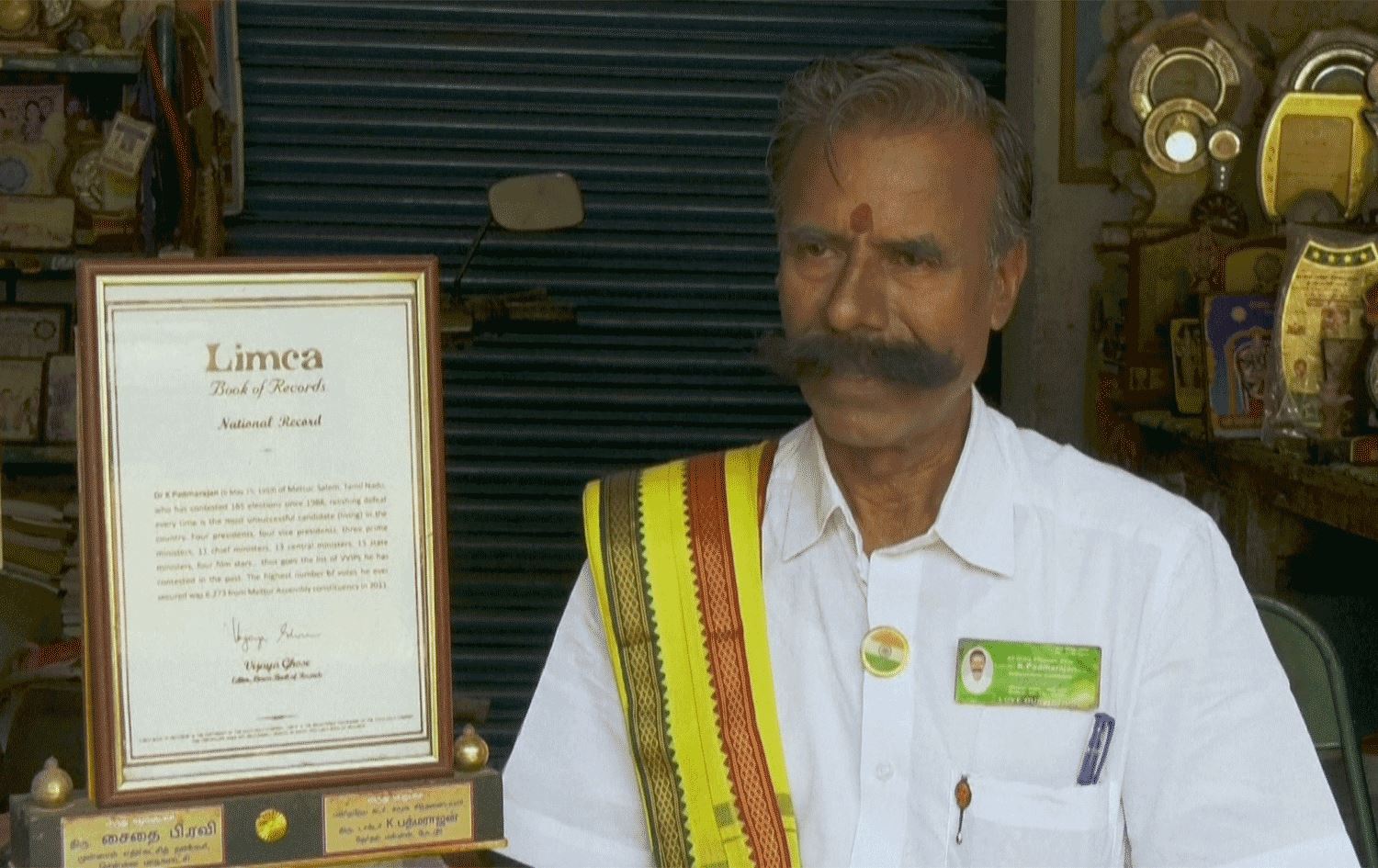 کتێبی ریکۆردەکانی هیندستان کە سەر بە حکومەتە، بڕوانامە و مەدالیای "زۆرترین بەربژێربوونی شکستخواردوو"ـی پێبەخشیوە، بەڵام هێشتا واز ناهێنێت.