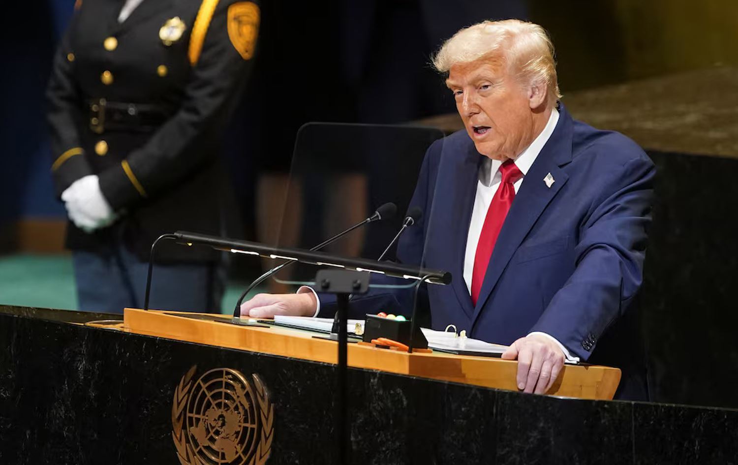 دۆناڵد ترەمپ، سەرۆکی ئەمریکا لە کۆمەڵەی گشتیی نەتەوە یەکگرتووەکان گوتارێک دەدات. وێنە: Reuters