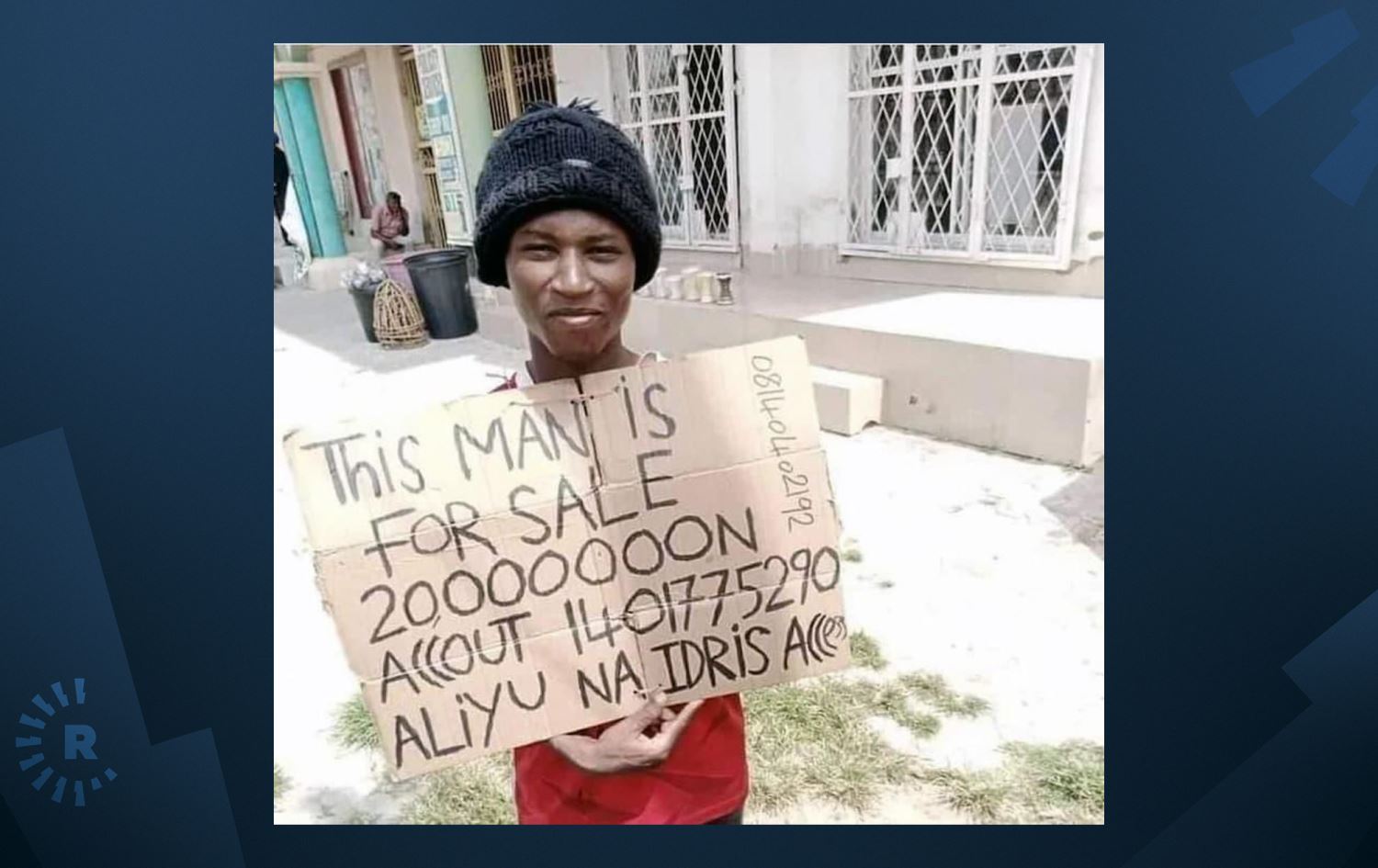 پۆلیسی شەرعیی شاری کانۆ لە باکووری نایجیریا کەسێکی بەناوی عەلیو ئیدریس، تەمەن 26 ساڵ، دەستگیرکرد، دوای ئەوەی وێنەکانی لە تۆڕە کۆمەڵاتییەکان بڵاوکردبوونەوە، دەردەکەوێت پۆستەرێکی بەدەستەوەیە و خۆی بە 49 هەزار دۆلار مەزاد کردووە.