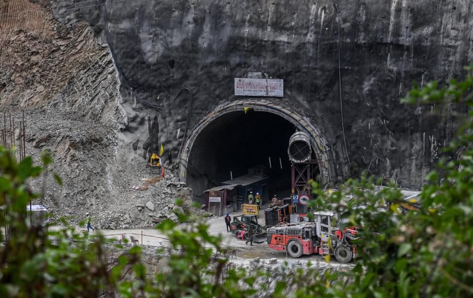 تونێلی سیلکیارا لە ویلایەتی ئوترەخان لە هیندستان، ئەوەی کرێکارەکان تێیدا گیریان خواردبوو. وێنە: AFP