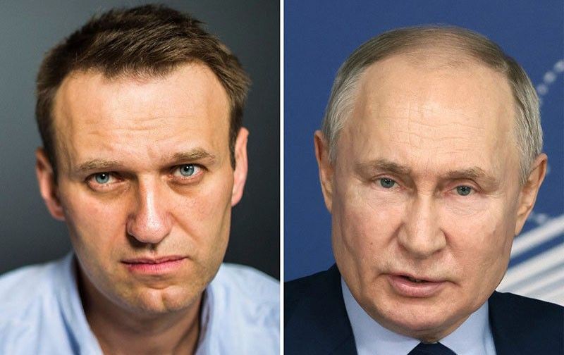 لای راست ڤلادیمیر پوتین، سەرۆکی رووسیا و لای چەپ ئالێکسی ناڤالنی، کەسایەتی ئۆپۆزسیۆنی دیاری رووسیا بوو لە مانگی شوباتی ئەمساڵ لە گرتووخانەیەکی وڵاتەکەی گیانی لەدەستدا.