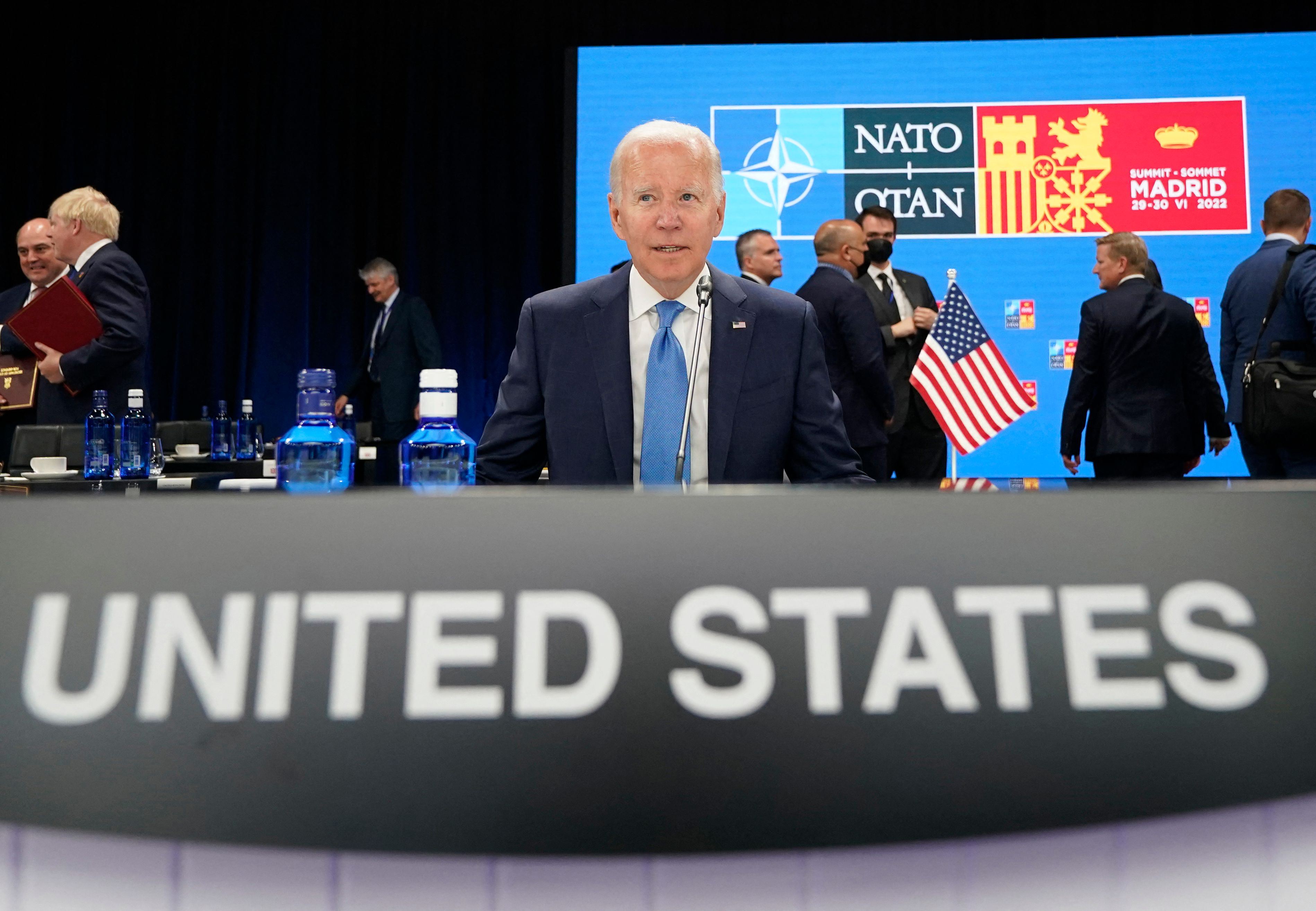 لە کۆبوونەوەیەکی دووقۆڵیدا لەگەڵ سکرتێری گشتیی ناتۆ لە مەدریدی ئیسپانیا، جۆ بایدن، سەرۆکی ویلایەتە یەکگرتووەکانی ئەمریکا رایگەیاند، "هێرشە دووژمنکارییەکەی رووسیا بۆسەر ئۆکراینا هەڕەشەیە بۆ هەموو وڵاتانی ناتۆ"، گوتیشی: "ناتۆ بەهێزە و یەکگرتووە و، پێکەوە هەنگاویش دەنێین بۆ بەهێزترکردنی هاوپەیمانێتییەکەمان".
