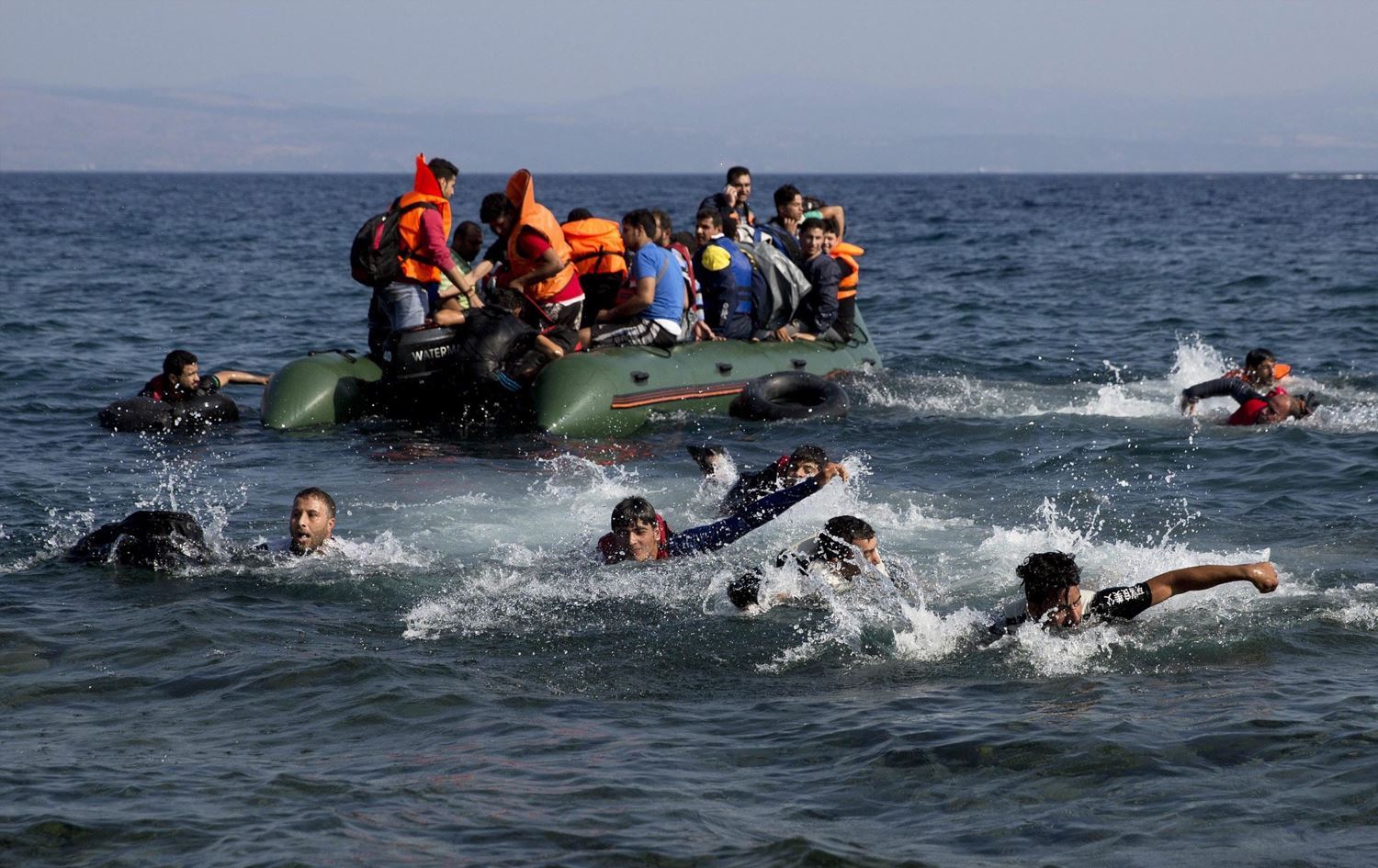 ژمارەیەک کۆچبەر لەکاتی هەوڵدانیان بۆ پەڕینەوە لە ئاوێک و گەیشتنیان بە وڵاتانی ئەوروپا. وێنە: ئەرشیڤ