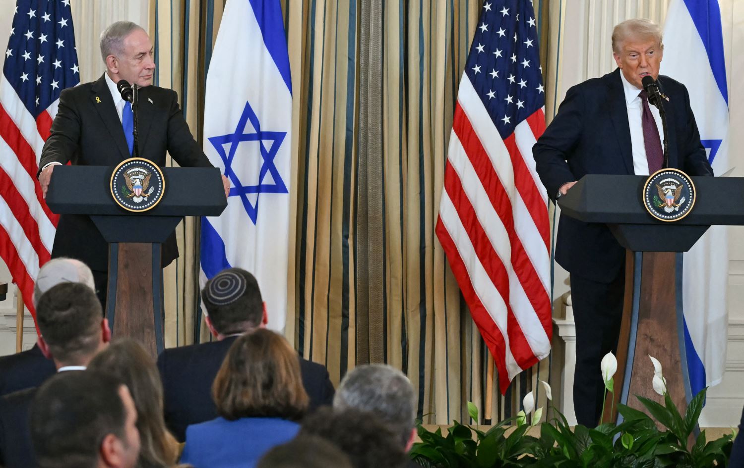 رۆژی دووشەممە، 29ی ئەیلوولی 2025، دۆناڵد ترەمپ، سەرۆکی ئەمریکا و بنیامین نەتەنیاهوو، سەرۆکوەزیرانی ئیسرائیل لە کۆشکی سپی کۆبوونەوە. پلانی ترەمپ بۆ ئاگربەستی غەززە یەکێک بوو لەو پرسانەی گفتوگۆیان لەبارەوە کرد.