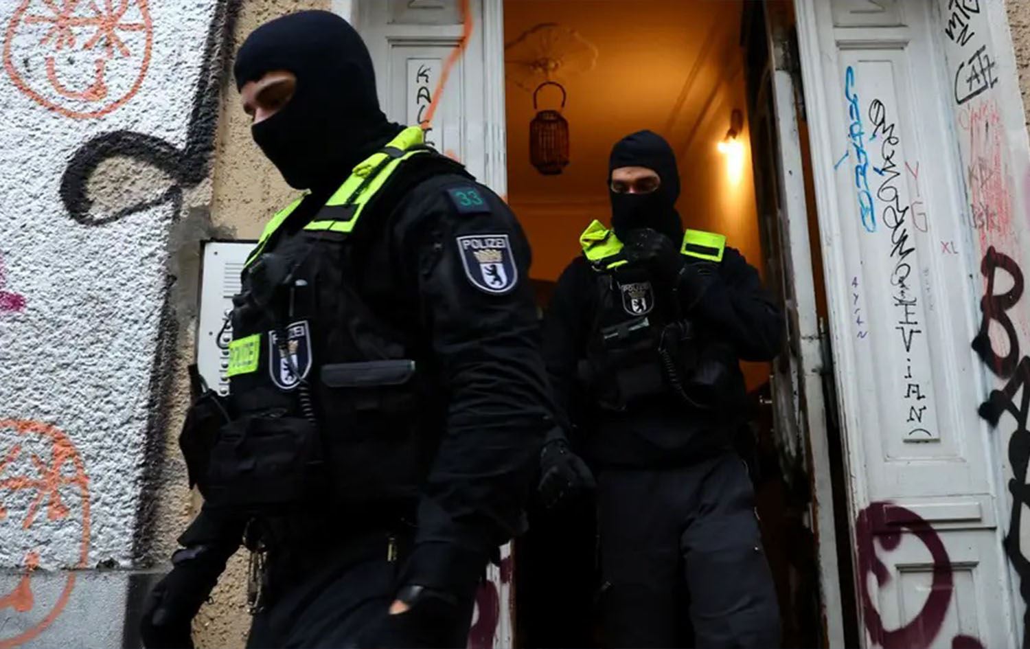 دوو پۆلیس لەکاتی ئۆپەراسیۆنێکی دژی ئەو کەسانەی پاڵپشتیی حەماس دەکەن. وێنە: Fabrizio Bensch/REUTERS