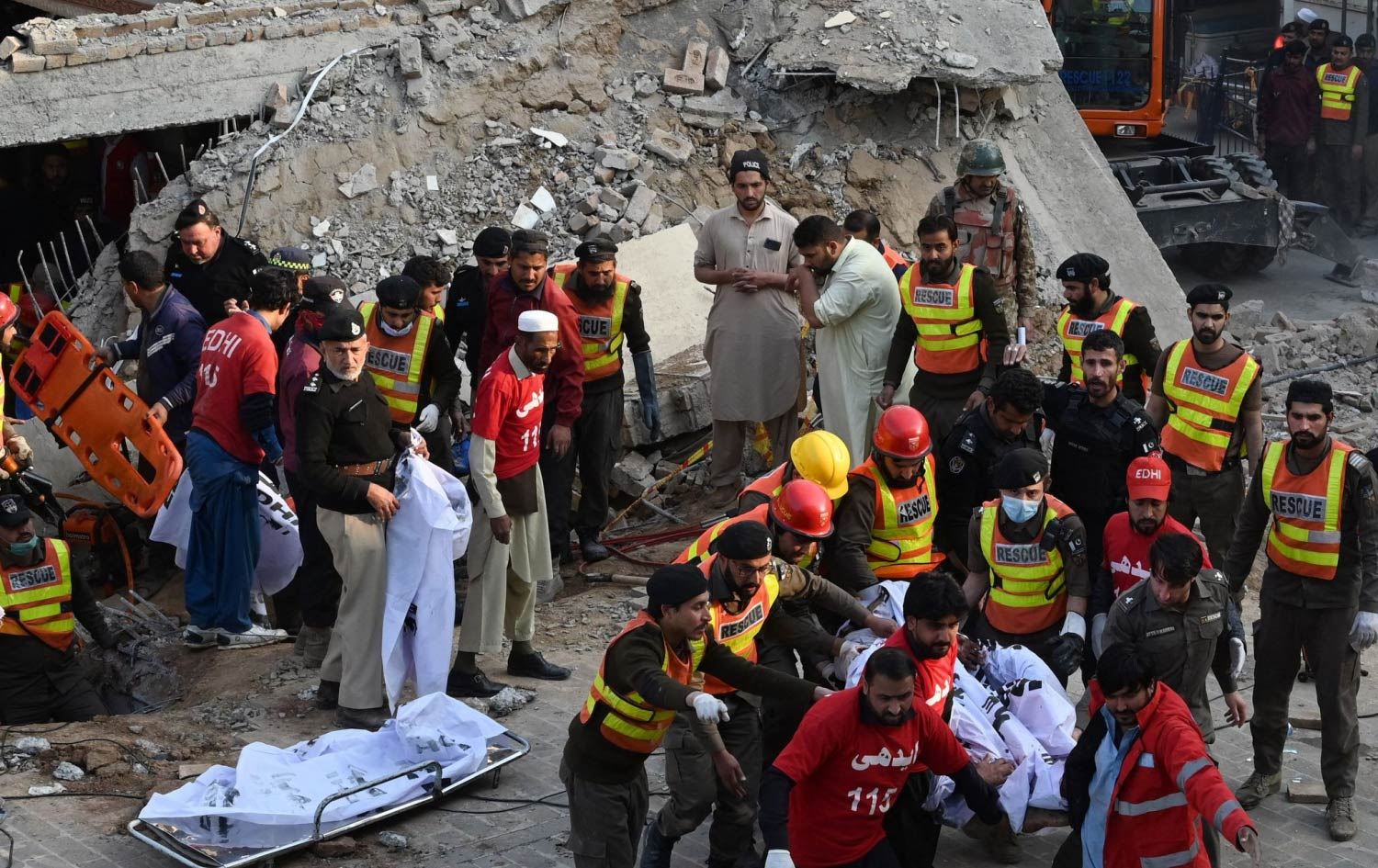 ئیجاز خان، بەڕێوەبەری پۆلیسی پیشاوەر گوتی: "ژمارەیەکی زۆری پۆلیس کەوتوونەتە ژێر داروپەردوو. هەوڵەکان بەردەوامن بۆ ئەوەی بە سەلامەتی دەریانبێنین."
