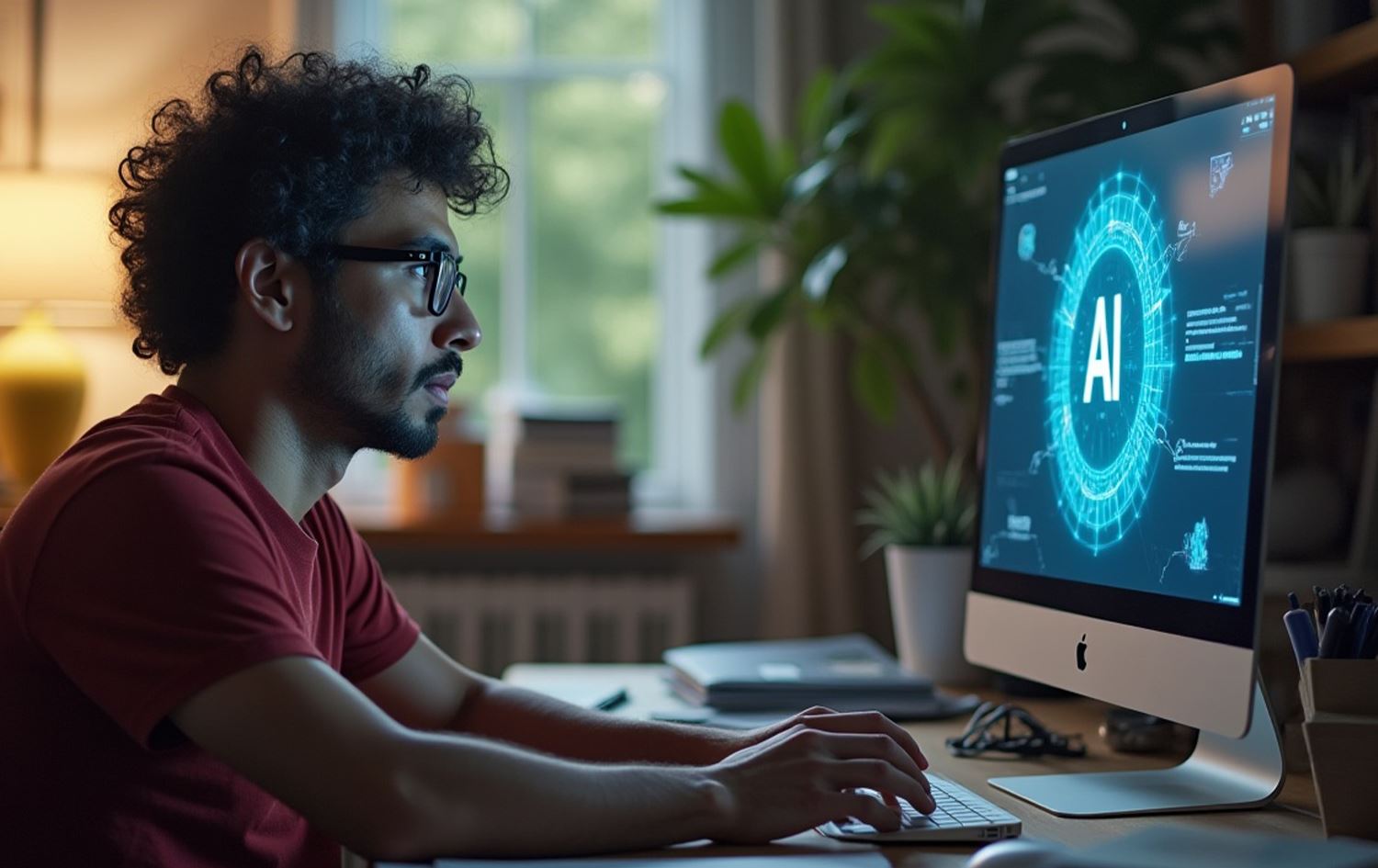 وێنەیەکی خەیاڵیی پیاوێک لەبەردەم کۆمپیوتەرێکدا. وێنەکە بۆ روونکردنەوەی هەواڵەکەیە و دروستکراوە