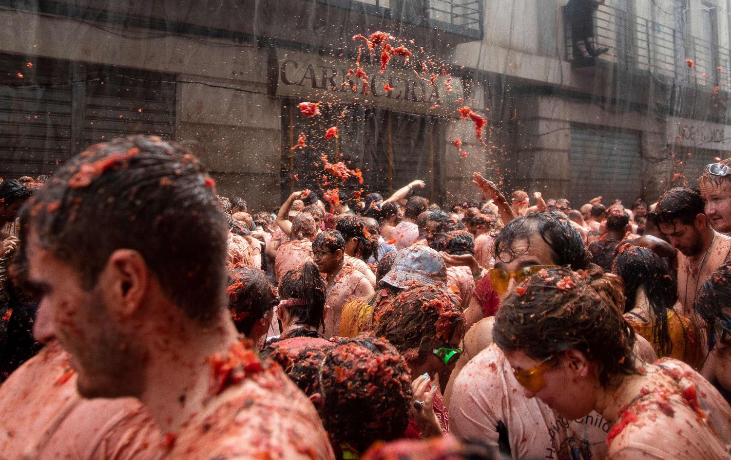ژمارەیەک بارهەڵگریی گەورە 120 تۆن تەماتەیان بەنێو بەشداربووانی فێستیڤاڵەکەدا دابەشکرد. ئەوانیش تا توانیان گرتیانە یەک؛ بۆ ئەو بەزمەش هەریەکیان 13 دۆلاریان بە بلیت داوە.