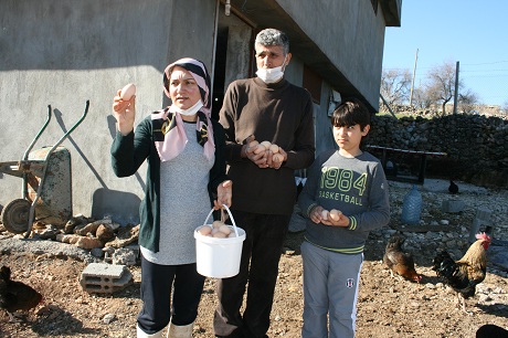 Projelerinin kabul edilmesinin ardından 30 bin lira hibe desteği alan Sibel Daş ve eşi, tavuk sayısını bine çıkarıp günlük 600 yumurta üretiyor.