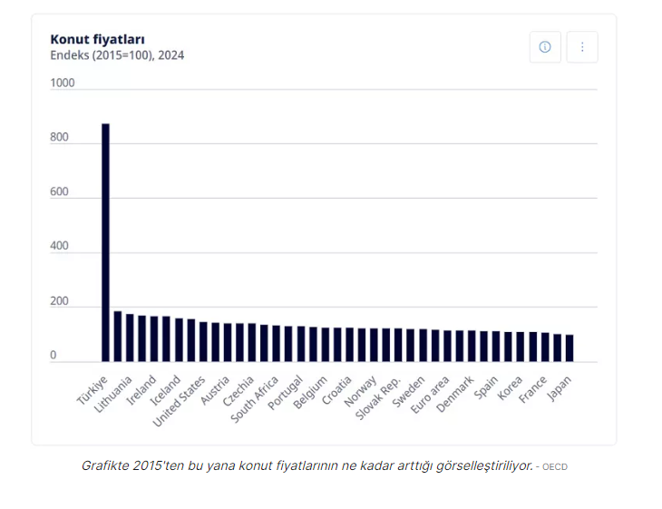 Ekonomik İşbirliği ve Kalkınma Örgütü'nün (OECD) verilerine göre, Türkiye, 2015'ten bu yana kira fiyatlarında en çok artışı gören ülke oldu.