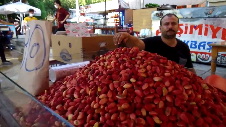Tabla üzerinde fıstık satan Mehmet Apaydın, “Dışarı yollar kapalı olduğundan fıstığa talep yok. Fıstık üretim bu sene yüksek. Ama yabancılar olmadığından fıstık satılmıyor” dedi.