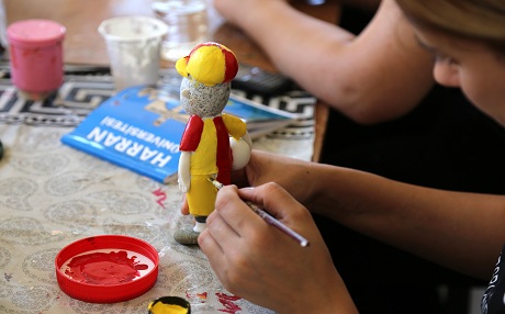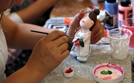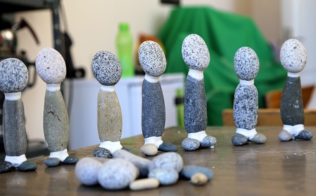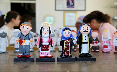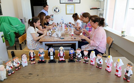 Büyük taşlarla bebeğin gövdesini oluşturan kursiyerler, orta büyüklüklerdeki taşlarla başını, küçüklerle ise ayaklarını yapıyor. Tutkalla yapıştırdıkları taşları seramik hamuruyla kaplayan, ardından da boya ve vernikle süsleyen kadınlar, taşları yöresel kıyafetli bebeklere dönüştürüyor.