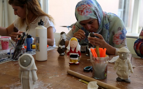 Halfeti Halk Eğitim Merkezi’nde (HEM) düzenlenen "Yöresel Taş Bebek Sanatı" kursuna katılan kadınların, Fırat'tan toplanan çeşitli büyüklüklerdeki çakıllardan ürettikleri taş bebeklerle hem aile bütçesine hem de ilçenin tanıtımına katkı sağlamaları amaçlanıyor.