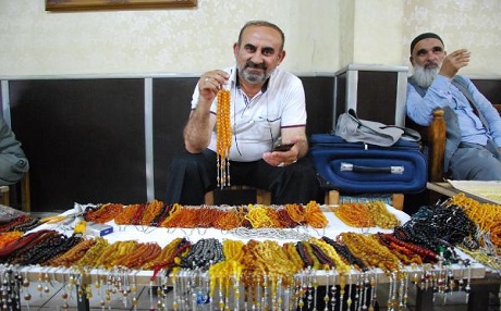 Tespih için Mardin'den geldiğini söyleyen Ahmet Yılmaz, “Kehribar kan dolaşımını dengede tutuyor. Guatra çok iyi geldiği biliniyor ve sarılığa karşı koruyucu olduğu biliniyor. Velhasıl faydaları saymakla bitmiyor" dedi.