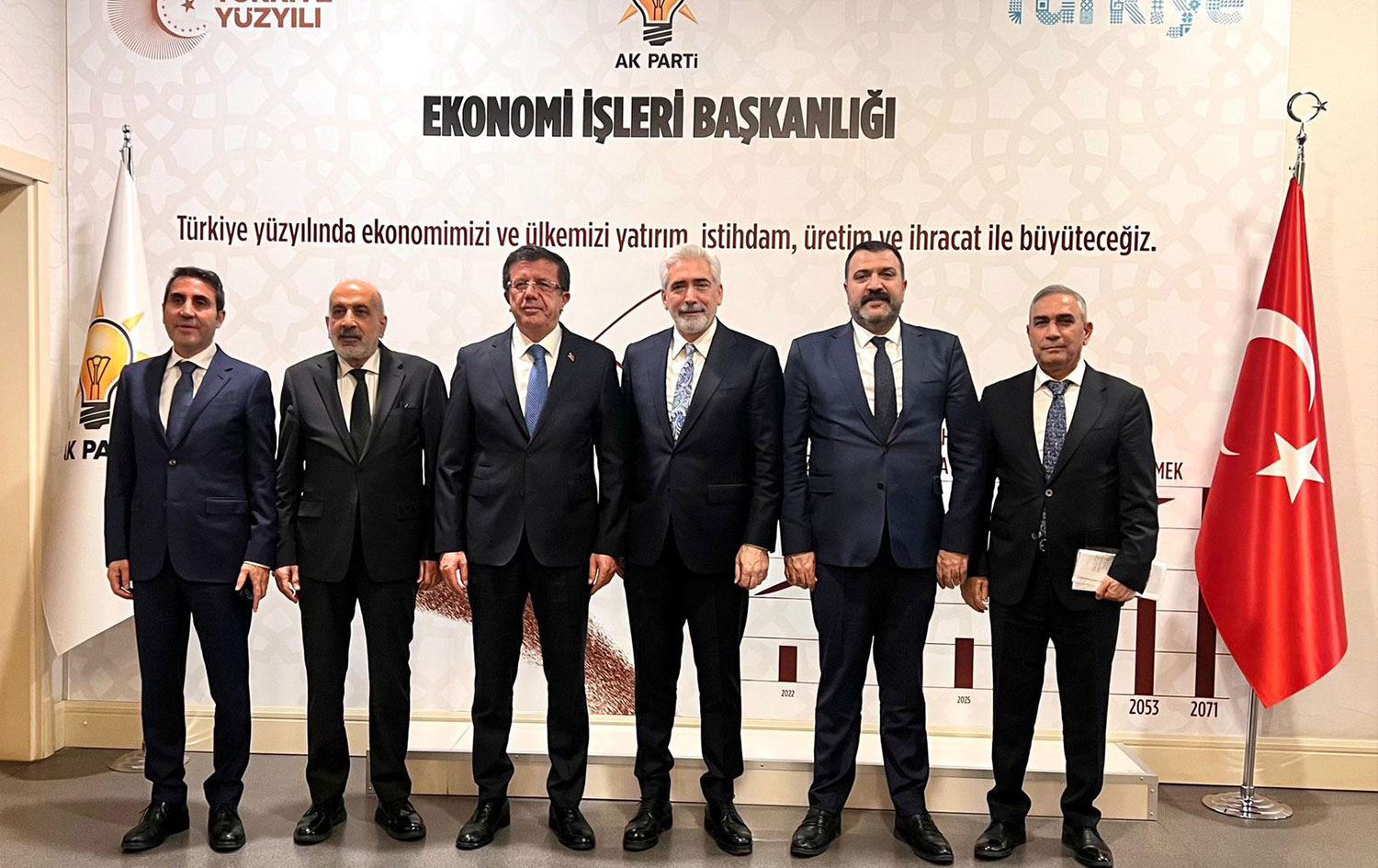 Heyet, AK Parti Ekonomi İşlerinden Sorumlu Genel Başkan Yardımcısı Nihat Zeybekci’yi AK Parti Genel Merkezi’ndeki makamında ziyaret etti.