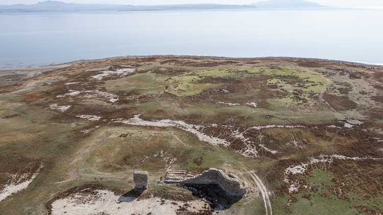 Haber Merkezi - Son yıllarda su seviyesinde düşüşün yaşandığı Van Gölü'nün kıyı bölgelerinde eski yapıların temel kalıntıları ortaya çıkmaya devam ediyor.