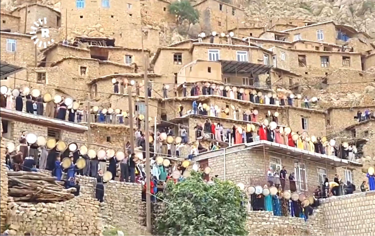 Bir birine yapışık inşa edilen evlerin damlarında kötün dar sokakları ile hırçın akan ırmağın kıyısında dizilen 500 kişi, def çalıp tempo tuttu. Yarsan inancının vazgeçilmezi olan tambur çalan sanatçılar da irfani müzikleri ile defjenlere eşlik etti.