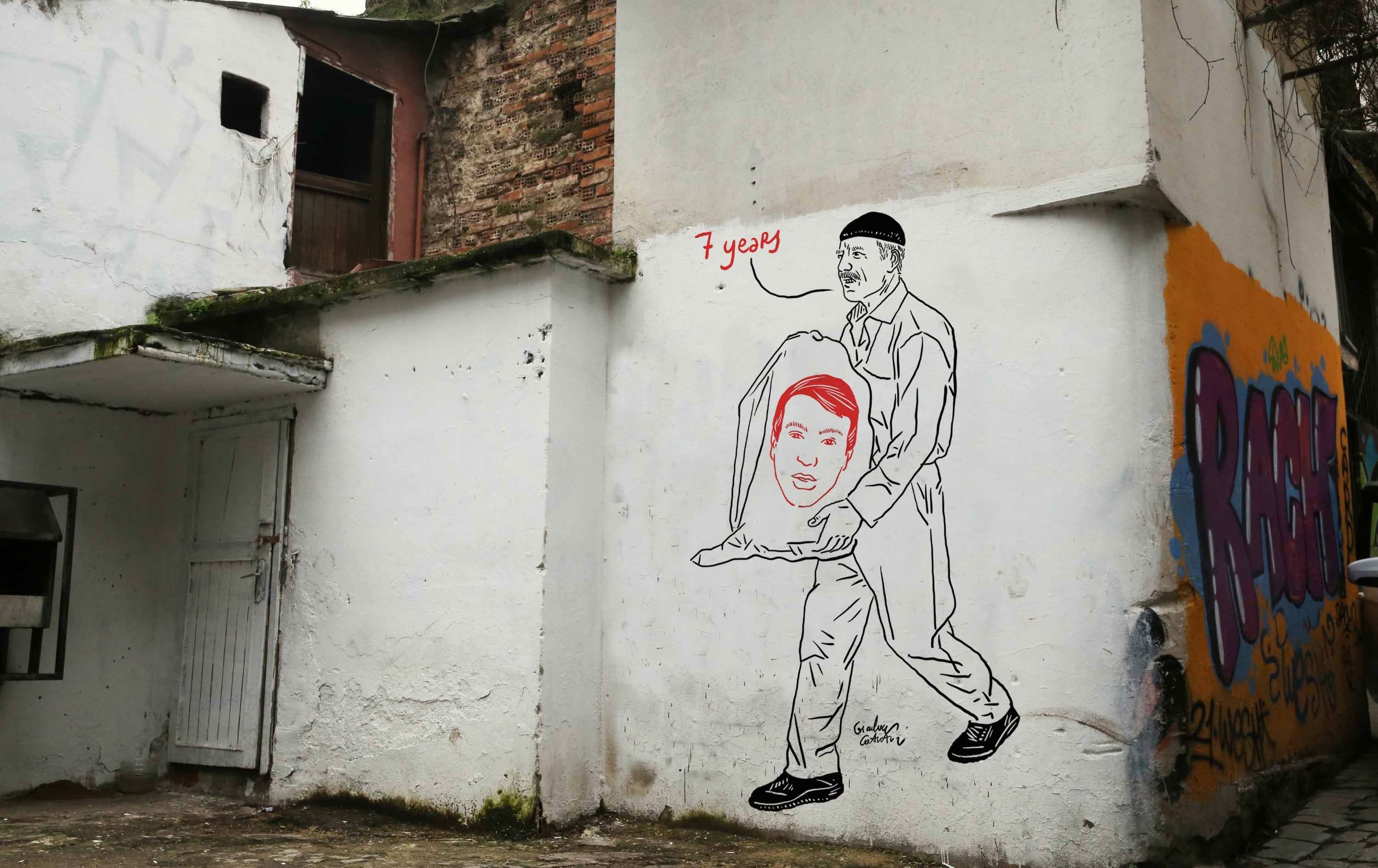 Ünlü İtalyan karikatürist Gianluca Costantini, Arslan’ın babasını ve torba içinde verilen Arslan’ın içinde yer aldığı torbayı İstanbul sokaklarındaki bir duvara çizdi.