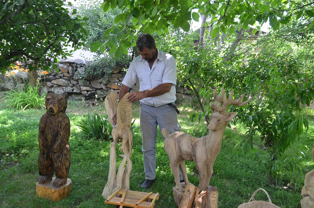 Boş zamanını değerlendirmek istediğini belirten Yoloğlu, "Burada çok söğüt ağacı var. Söğüt ağacıyla bu işe başladım. Ondan sonra cevizden geyik ve kartal heykeli yaptım. Birçoğunu hediye ettim. Bazılarını da kireç taşından yapıyorum ancak taş bulamıyorum. Keski, keser ve matkap kullanıyorum. İlkel yöntemlerle ağaçları ve taşları sanat eserine dönüştürüyorum." dedi.