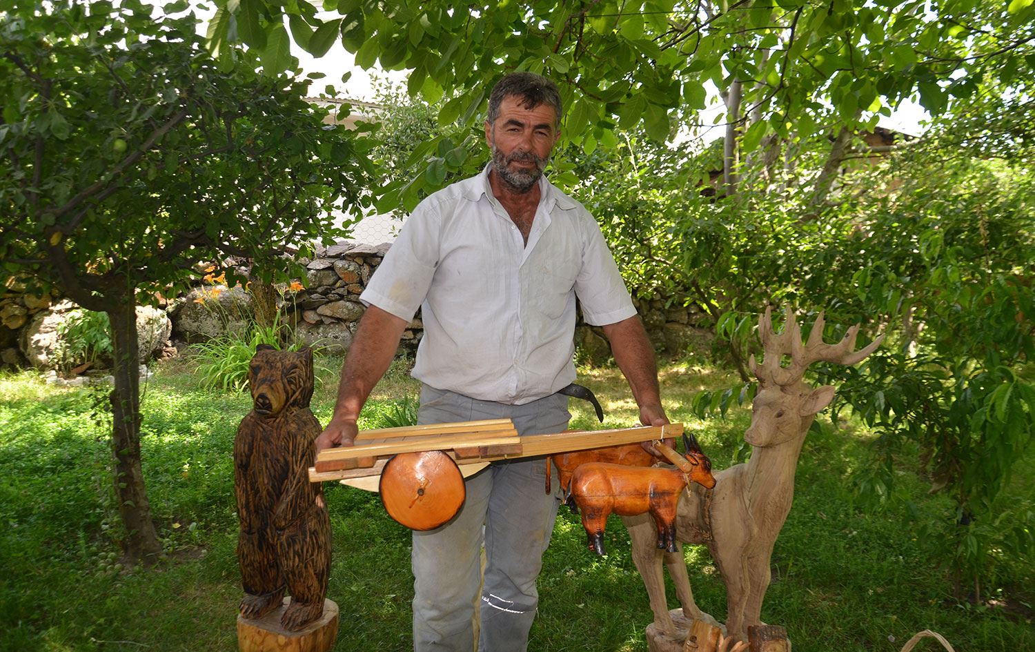 "Son zamanlarda çeşme taşlarına başladım. Kafamda canlandırdığım, yapmak istediğim eserler var. Birkaç tane taştan çeşme yapmayı düşünüyorum. Topladığım ağaçları önce motorlu testereyle şekillendiriyorum sonra da atölyeye çevirdiğim tandır evinde ince işlerini yapıyorum. Kurumuş ağaçları topluyorum, doğaya zarar vermiyorum. Bulduğum atık ağaçların yapısına, boyutuna göre eserlerime şekil veriyorum."