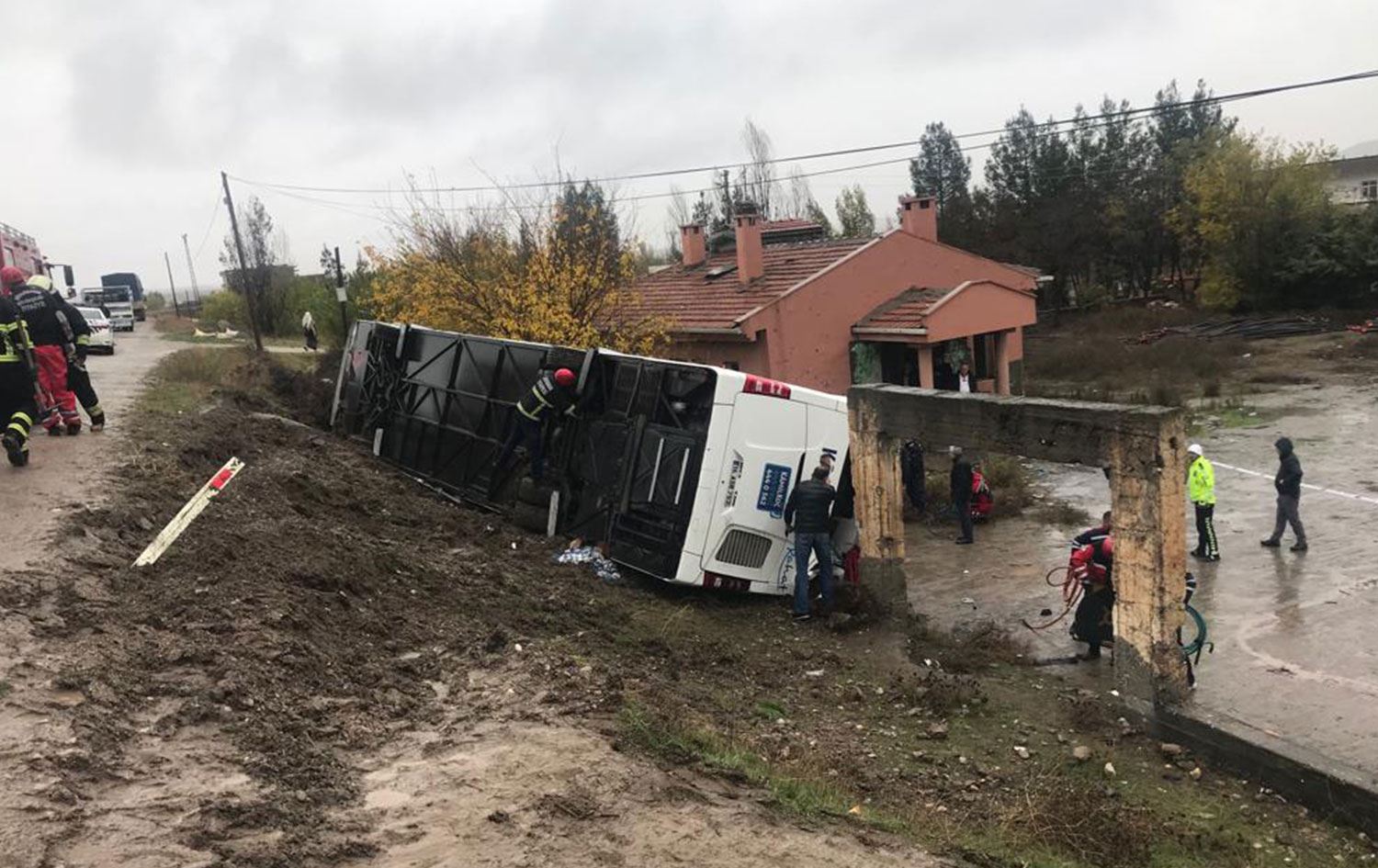 Kazada ilk belirlemelere göre 20 kişi yaralandı. Otobüs içerisinde sıkışan bazı yolcuları ekipler çıkarmaya çalışıyor.