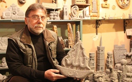 Haber Merkezi - Diyarbakır'da yaşayan 64 yaşındaki emekli öğretmen Nurettin Medyelioğlu, Sur ilçesindeki küçük atölyesinde tarihi yapıların maketini bazalt taşlarına işliyor.