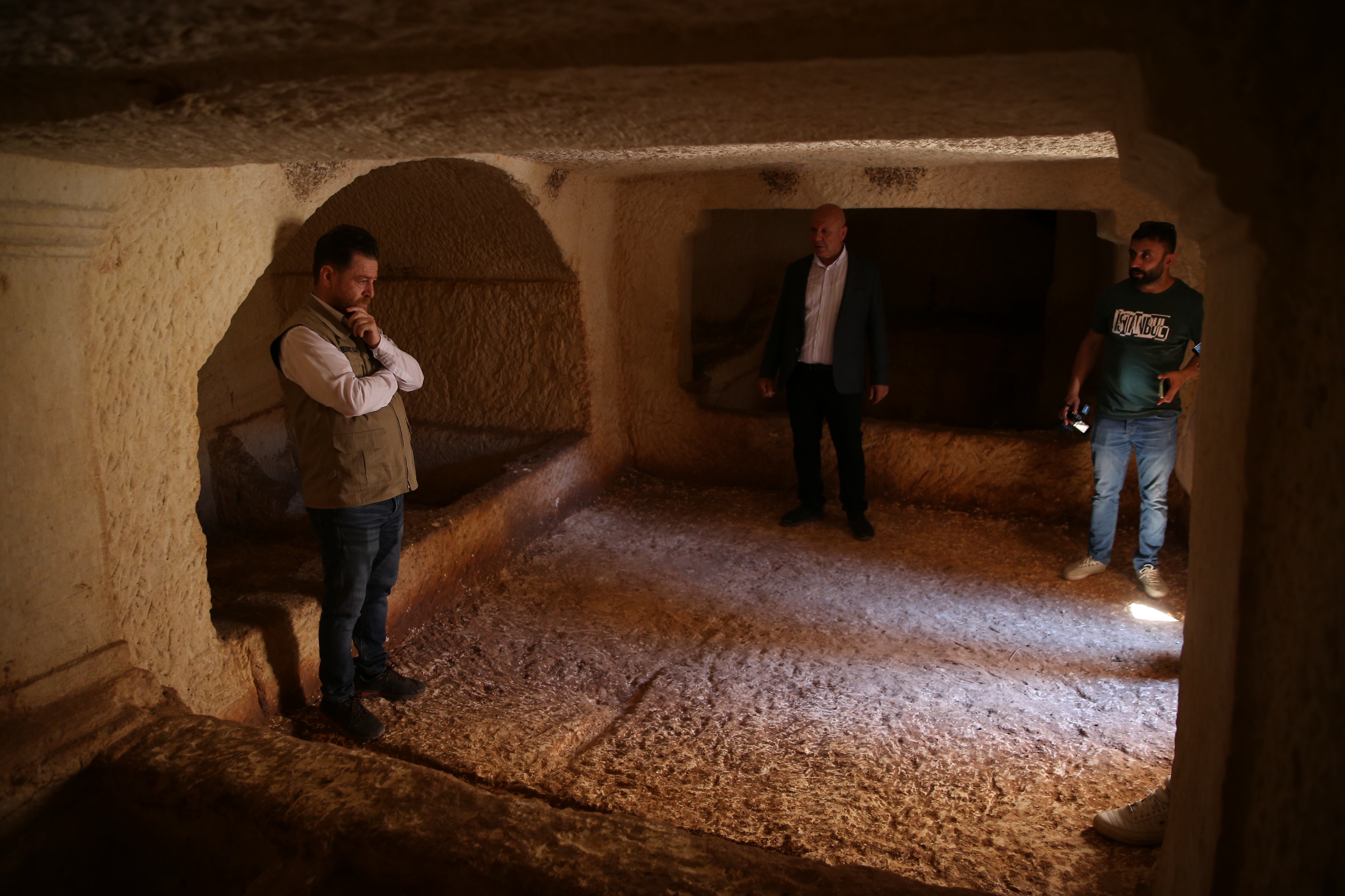 Adıyaman İl Kültür ve Turizm Müdürü Mehmet Yelken ile Adıyaman Müze Müdürü Mehmet Alkan, kazı çalışmalarının yapıldığı alanda incelemelerde bulunarak bilgi aldı. Çalışmaların, halk arasında “sonsuzluk merdiveni” olarak bilinen nekropol bölgesinde yürütüldüğü belirtildi. Hellenistik döneme ait bu alanda hypogeum tarzında inşa edilmiş ve 14 bireyin gömülü olduğu oda mezar keşfedildi. Yaklaşık 2 bin 100 yıllık mezarda yapılan incelemelerde çeşitli boncuklar, amuletler ve en önemlisi Pataikos figürlü fayans nazarlık bulundu.
